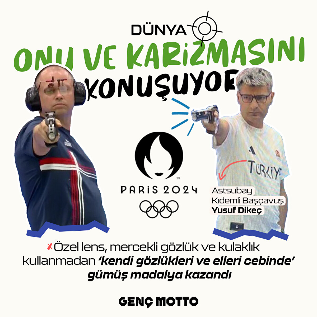 Astsubay Kıdemli Başçavuş Yusuf Dikeç, Olimpiyatlarda havalı atış kategorisinde hiçbir ekipman kullanmadan 'elleri cebinde' atış yaparak, olimpiyat tarihinde atıcılıkta ilk kez gümüş madalya kazanan sporcumuz oldu ve dünyanın gündemine oturdu.