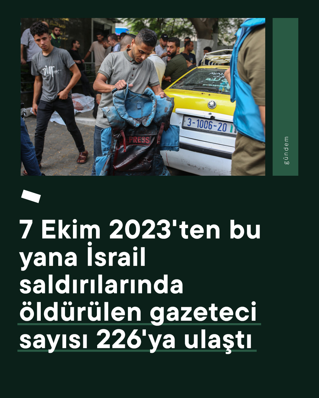 7 Ekim 2023'ten bu yana İsrail saldırılarında öldürülen gazeteci sayısı 226'ya ulaştı.