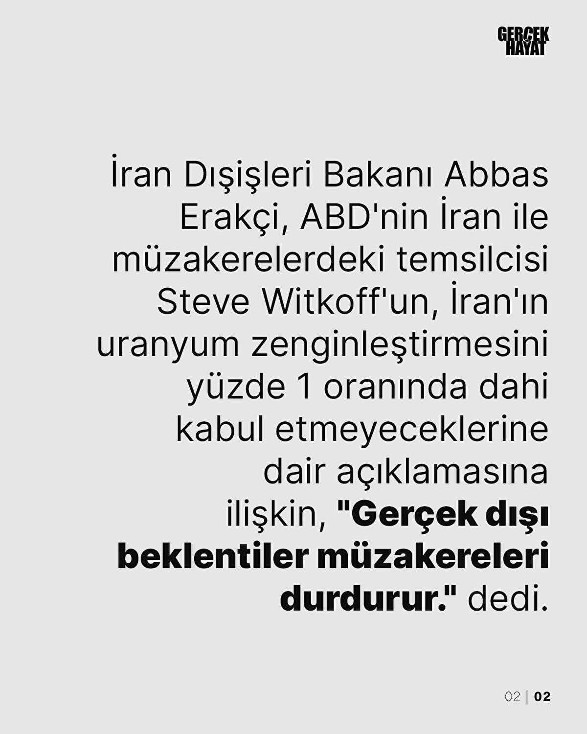 İran Dışişleri Bakanı Abbas Erakçi, Tahran'ın uranyum zenginleştirme faaliyetlerini tamamen sona erdirmesi ısrarını sürdüren ABD'nin 'gerçek dışı' beklentilerinin müzakereleri başarısızlığa uğratabileceğini söyledi.