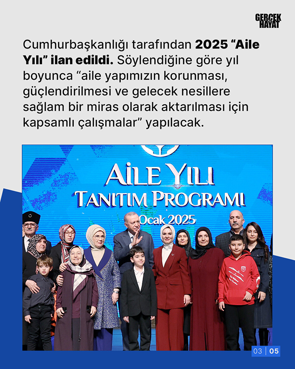 Cumhurbaşkanlığı tarafından 2025 “Aile Yılı” ilan edildi. Söylendiğine göre yıl boyunca “aile yapımızın korunması, güçlendirilmesi ve gelecek nesillere sağlam bir miras olarak aktarılması için kapsamlı çalışmalar” yapılacak.