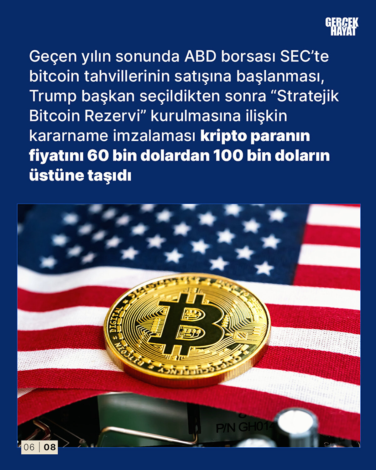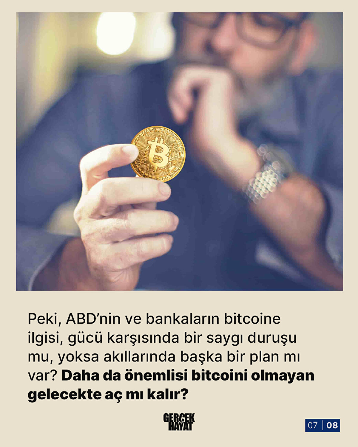 Bankalar günümüzde güç adına her şeyin simgesi olsa da reklamlarla, teknolojik imkânları sonuna kadar kullansa da müşterilerine yolunacak kaz gibi bakan açgözlülüğü, krizler ve hortumlamalarla dolu şaibeli tarihi nedeniyle insanların güvenini gitgide kaybediyor; aranan sahiciliği artık veremiyor. Oluşan bu boşlukta ortaya çıkan kripto paralar merkeziyetsiz, faizsiz, saklamada tam kontrol sağlamaları, transferi ucuz olmaları ve de hızla yaşanan değer artışları nedeniyle trilyonlarca dolarlık bir ekosisteme dönüştü. Dün bankaların zoruyla devletlerin yasaklamaya çalıştığı bitcoin, bugün borsalarda alınıp satılıyor, merkez bankalarında rezerv para olarak kullanılıyor. Geçen yılın sonunda ABD borsası SEC'te bitcoin tahvillerinin satışına başlanması, Trump başkan seçildikten sonra “Stratejik Bitcoin Rezervi" kurulmasına ilişkin kararname imzalaması kripto paranın fiyatını 60 bin dolardan 100 bin doların üstüne taşıdı. Peki, ABD'nin ve bankaların bitcoine ilgisi, gücü karşısında bir saygı duruşu mu, yoksa akıllarında başka bir plan mı var? Daha da önemlisi bitcoini olmayan gelecekte aç mı kalır?