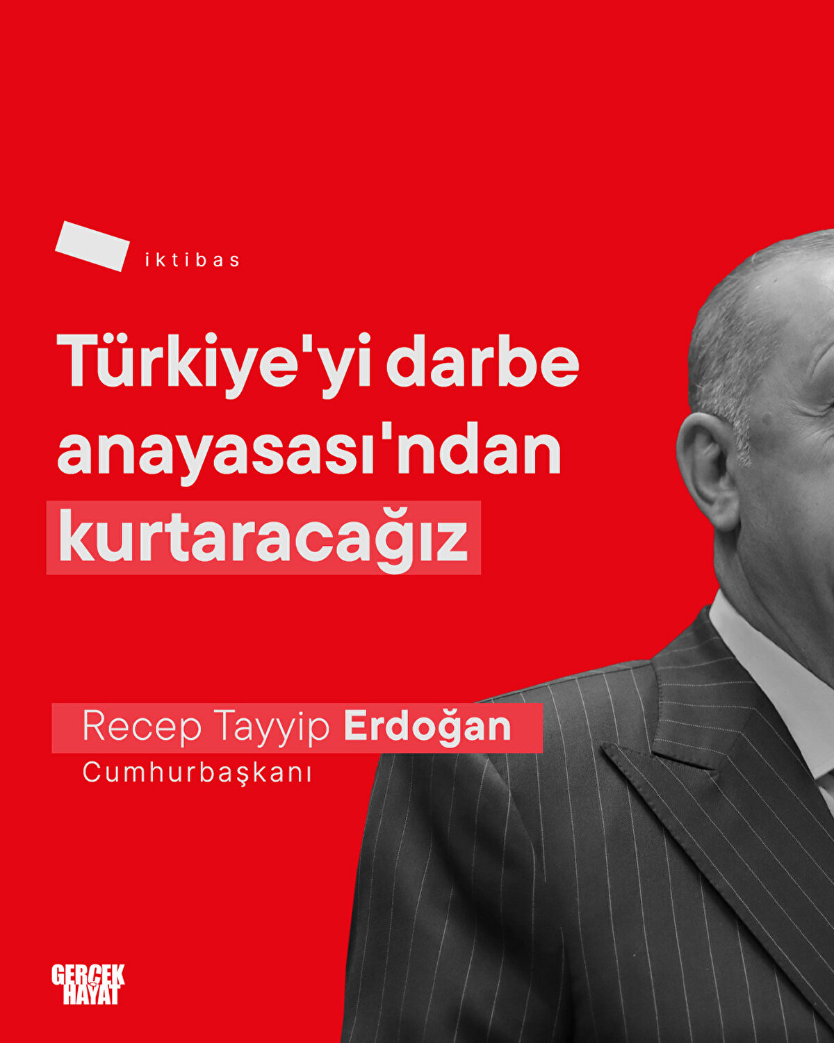 Türkiye'yi darbe anayasası'ndan kurtaracağız. Dün itibariyle 10 hukukçu arkadaşımı görevlendirdim. Şimdi bu hukukçu arkadaşlarımız çalışmaya başlayacaklar. Bu çalışmayla birlikte inşallah yeni anayasa hazırlık çalışmalarını yürüteceğiz. Recep Tayyip Erdoğan Cumhurbaşkanı