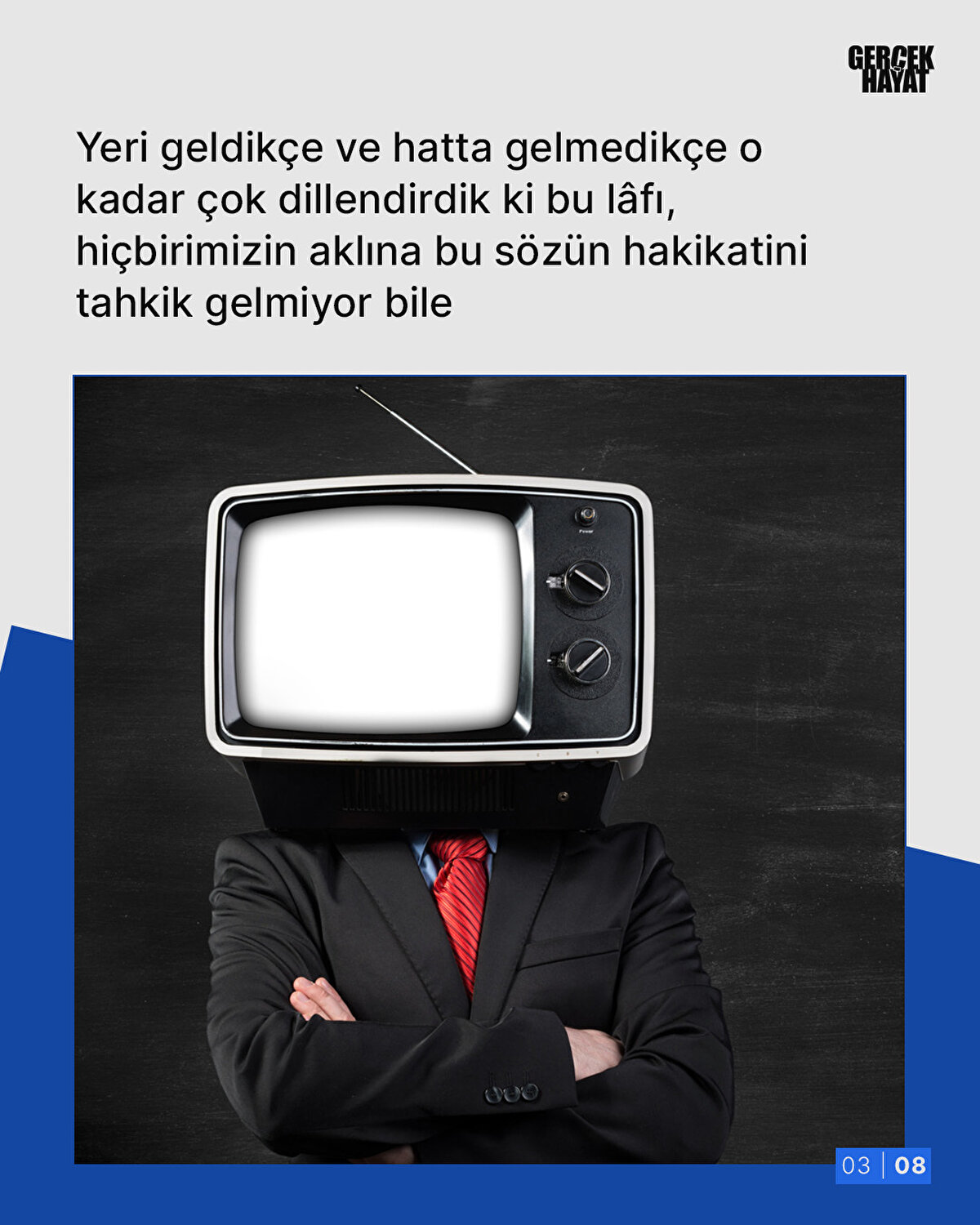 Yeri geldikçe ve hatta gelmedikçe o kadar çok dillendirdik ki bu lâfı, hiçbirimizin aklına bu sözün hakikatini tahkik gelmiyor bile.