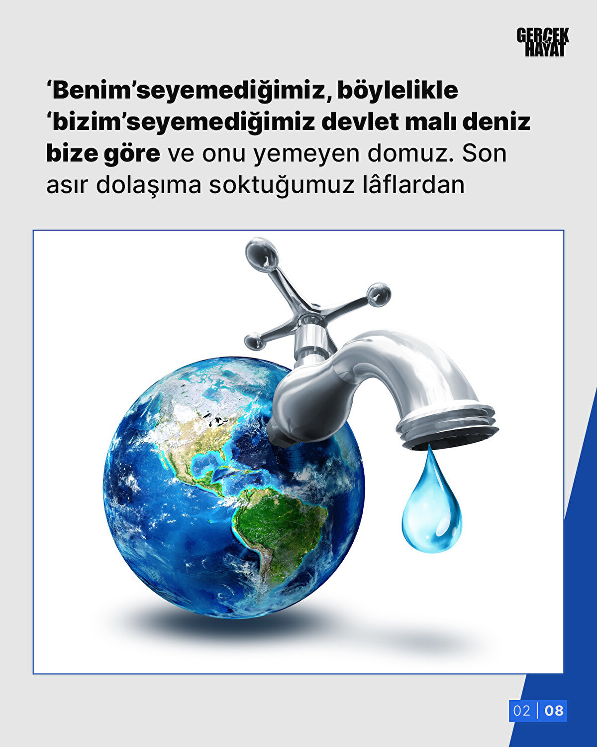 'Benim'seyemediğimiz, böylelikle 'bizim'seyemediğimiz devlet malı deniz bize göre ve onu yemeyen domuz. Son asır dolaşıma soktuğumuz lâflardan.