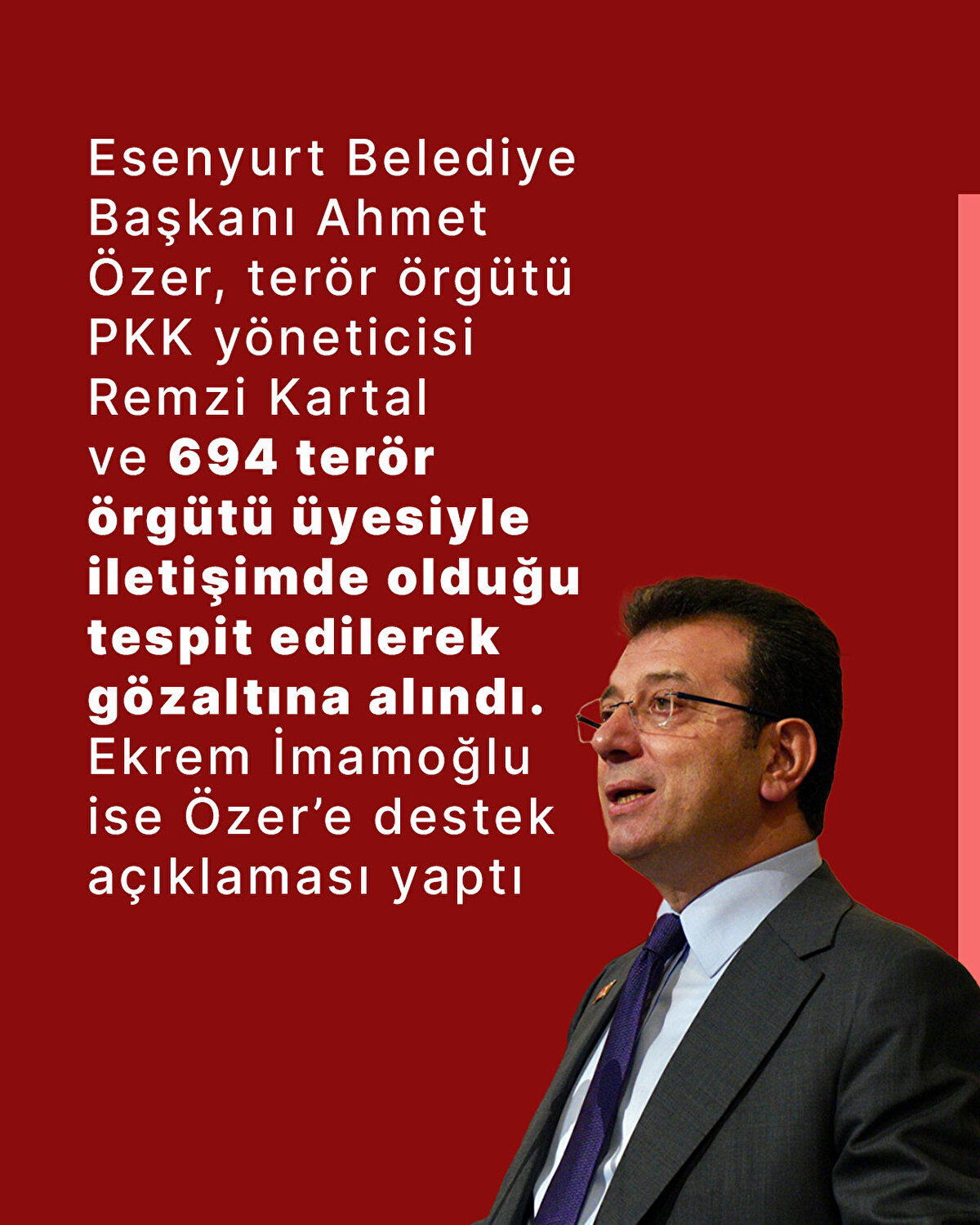 Terör örgütü PKK/KCK üyesi olmak suçundan gözaltına alınan Esenyurt Belediye Başkanı Ahmet Özer'e, Özgür Özel ve Ekrem İmamoğlu destek açıklaması yaptı.