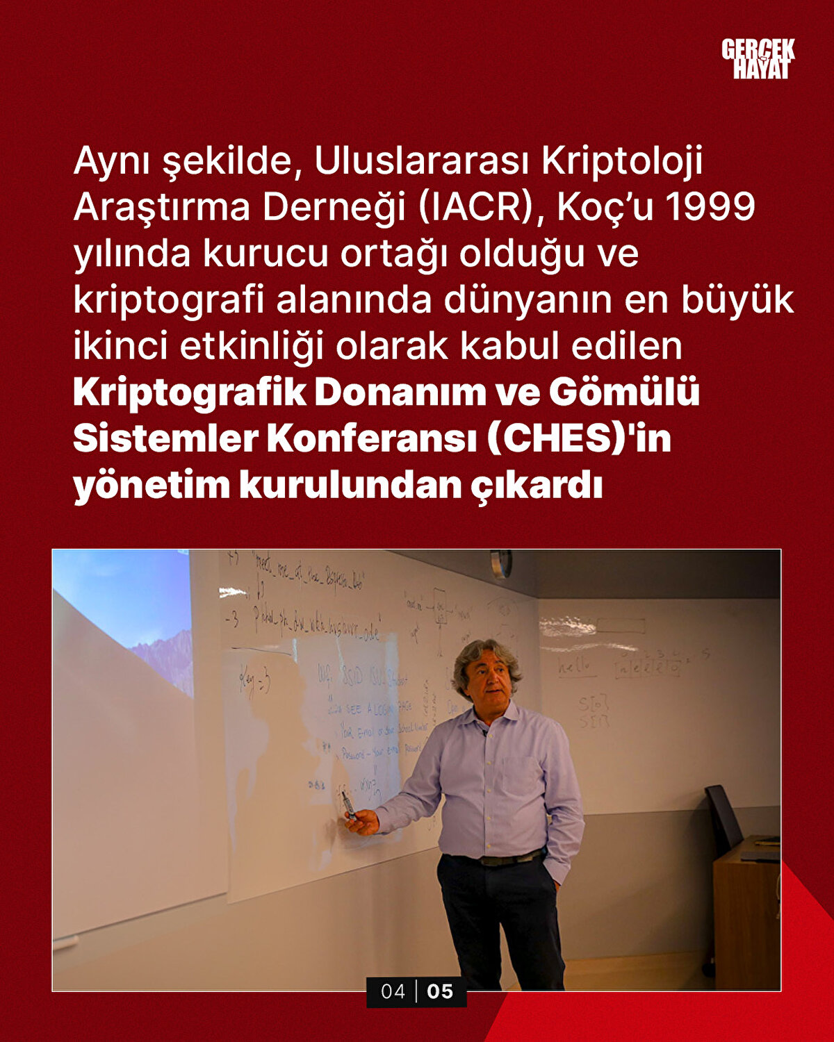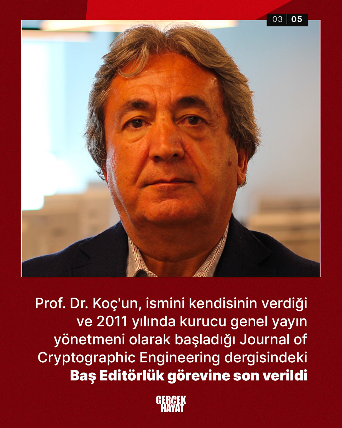 Prof. Dr. Koç'un, ismini kendisinin verdiği ve 2011 yılında kurucu genel yayın yönetmeni olarak başladığı Journal of Cryptographic Engineering dergisindeki Baş Editörlük görevine son verildi