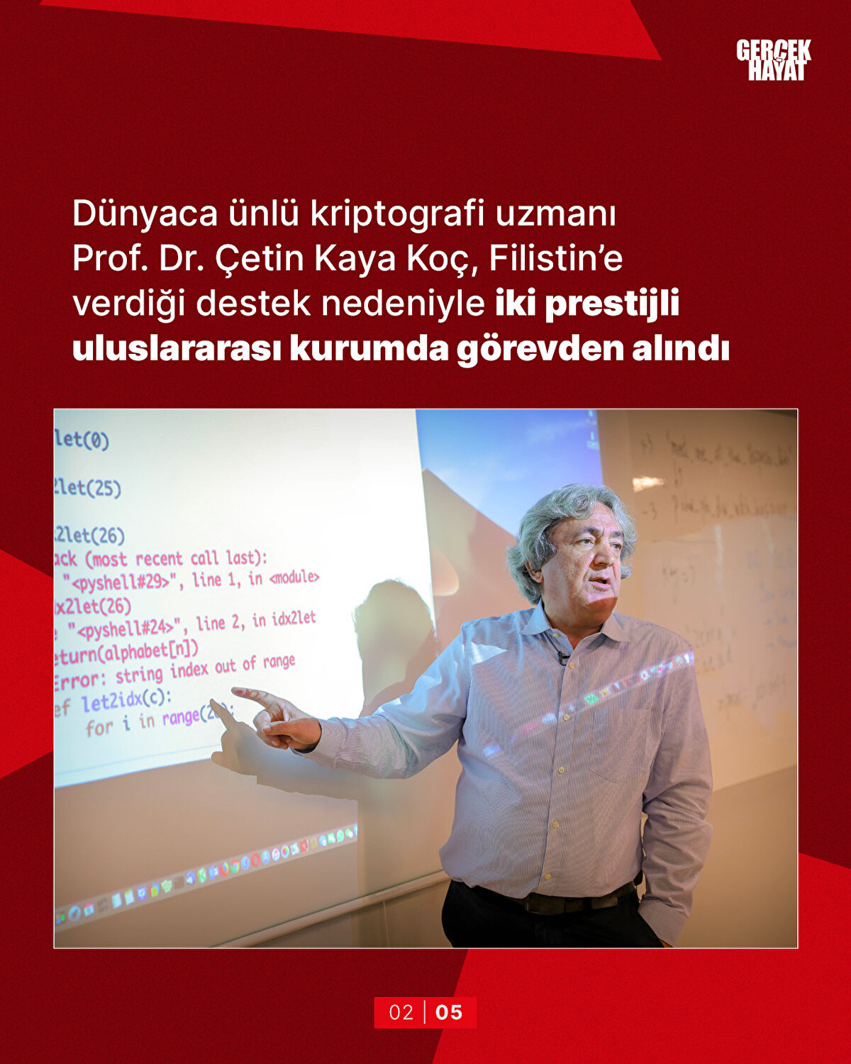 Dünyaca ünlü kriptografi uzmanı Prof. Dr. Çetin Kaya Koç, Filistin'e verdiği destek nedeniyle iki prestijli uluslararası kurumda görevden alındı.