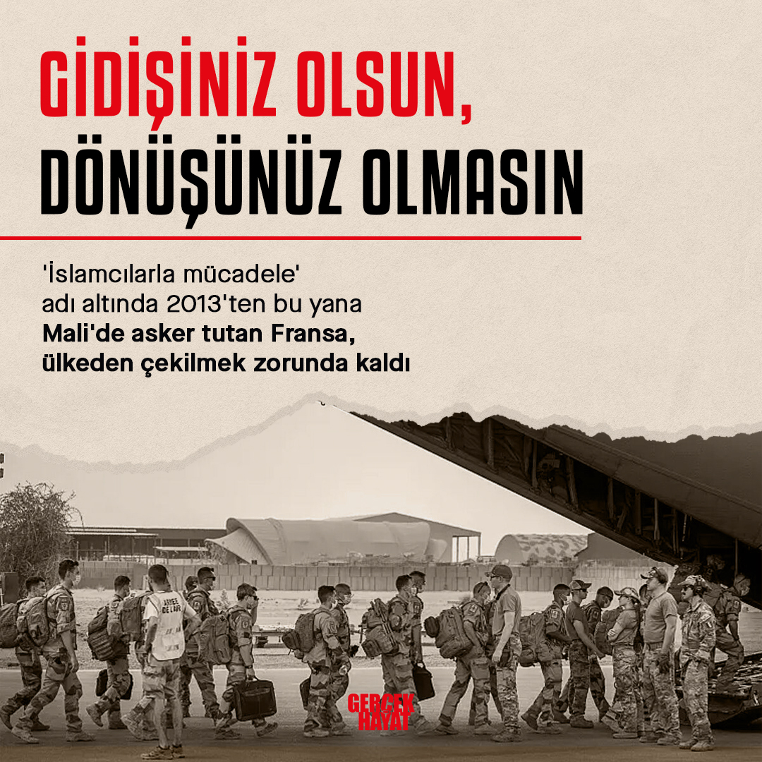 Fransa, Barkhane Operasyonu kapsamında Mali'de bulunan askeri güçlerinden son birimin de ülkeyi terk ettiğini duyurdu.