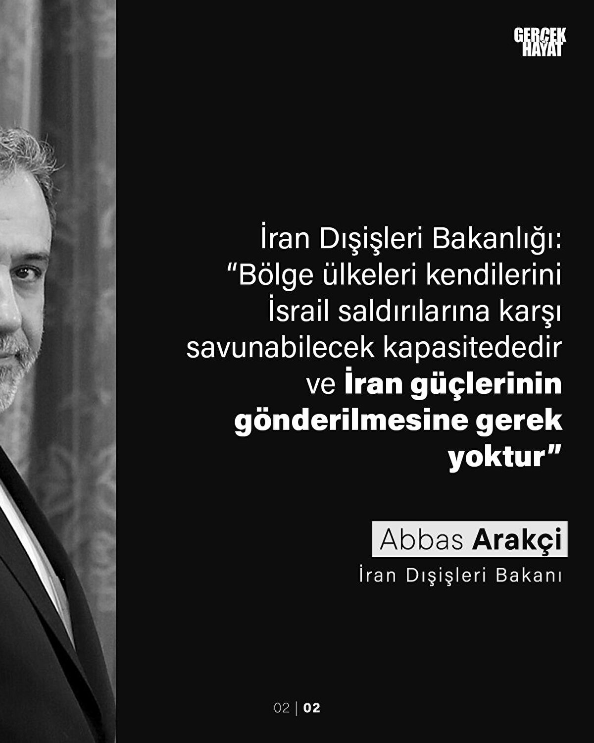 İran Dışişleri Bakanlığı: "Bölge ülkeleri kendilerini İsrail'e karşı savunabilir. İran'ın güç göndermesine gerek yok."