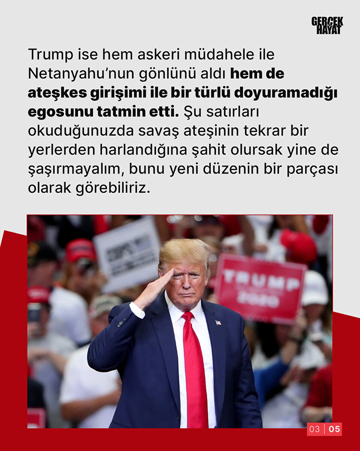 Tahran ve Tel-Aviv arasındaki çatışma, Trump'ın dayattığı ateşkes ile noktalandı gözüküyor. İsrail, atom bombalı İran tehdidini uzaklaştırdığı, İran ise burun buruna geldiği rejim değişikliğinden şimdilik yakayı sıyırdığı için mevcut durumdan razı. Trump ise hem askeri müdahele ile Netanyahu'nun gönlünü aldı hem de ateşkes girişimi ile bir türlü doyuramadığı egosunu tatmin etti. Şu satırları okuduğunuzda savaş ateşinin tekrar bir yerlerden harlandığına şahit olursak yine de şaşırmayalım, bunu yeni düzenin bir parçası olarak görebiliriz. Ancak İran ve İsrail gibi iki “imaj devleti" söz konusu olduğunda hakikate doğru atılan her adım beraberinde birçok ezberi sorgulatacaktır. İşte bu yazıda İran-İsrail düşmanlığının propagandadan arındırılmış gerçek yüzünü ve Tahran rejimini bekleyen akıbetle ilgili ipuçlarını okuyacaksınız.
