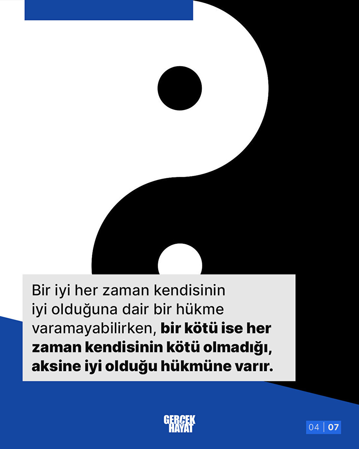 Bir iyi her zaman kendisinin iyi olduğuna dair bir hükme varamayabilirken, bir kötü ise her zaman kendisinin kötü olmadığı, aksine iyi olduğu hükmüne varır.