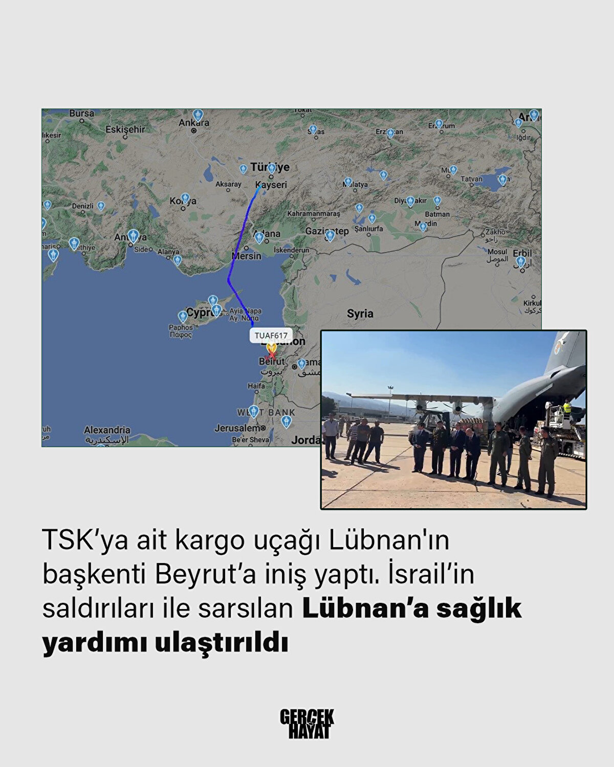 Türk Hava Kuvvetleri, İsrail'in saldırısı altında olan Lübnan'a yardım ulaştırdı.