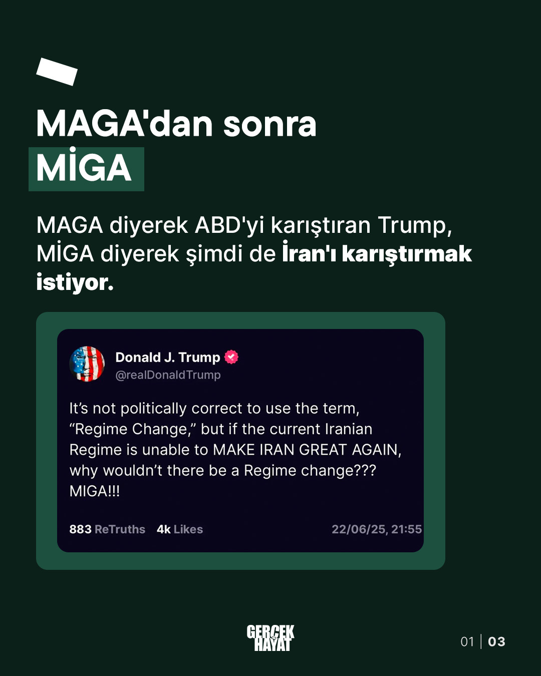 MAGA diyerek ABD'yi karıştıran Trump, MİGA diyerek şimdi de İran'ı karıştırmak istiyor.