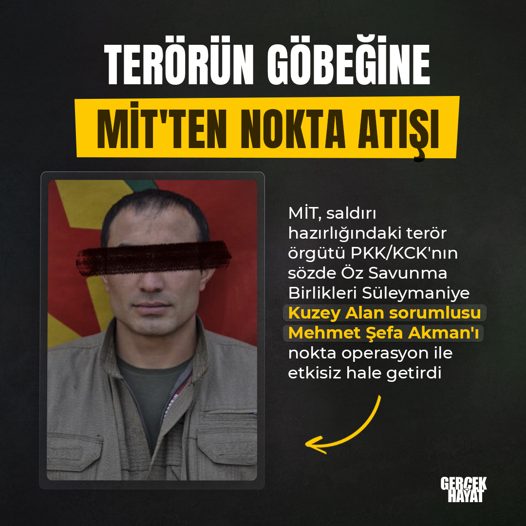 Milli İstihbarat Teşkilatı, saldırı hazırlığında olan PKK/KCK'lı teröristi nokta atışı operasyonla etkisiz hale getirdi.
