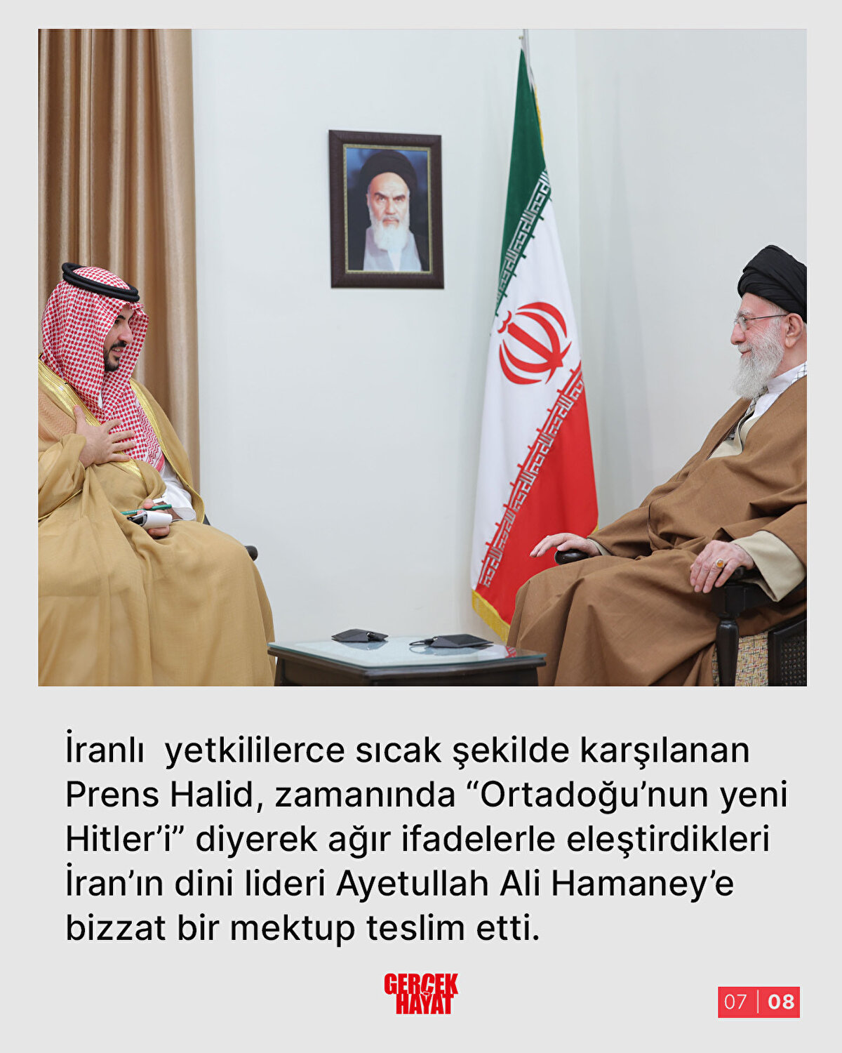 İranlı yetkililerce sıcak şekilde karşılanan Prens Halid, zamanında “Ortadoğu'nun yeni Hitler'i” diyerek ağır ifadelerle eleştirdikleri İran'ın dini lideri Ayetullah Ali Hamaney'e bizzat bir mektup teslim etti.