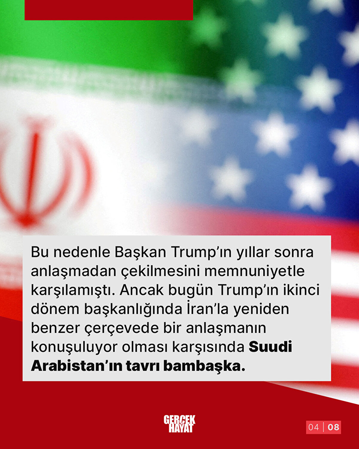 Bu nedenle Başkan Trump'ın yıllar sonra anlaşmadan çekilmesini memnuniyetle karşılamıştı. Ancak bugün Trump'ın ikinci dönem başkanlığında İran'la yeniden benzer çerçevede bir anlaşmanın konuşuluyor olması karşısında Suudi Arabistan'ın tavrı bambaşka.