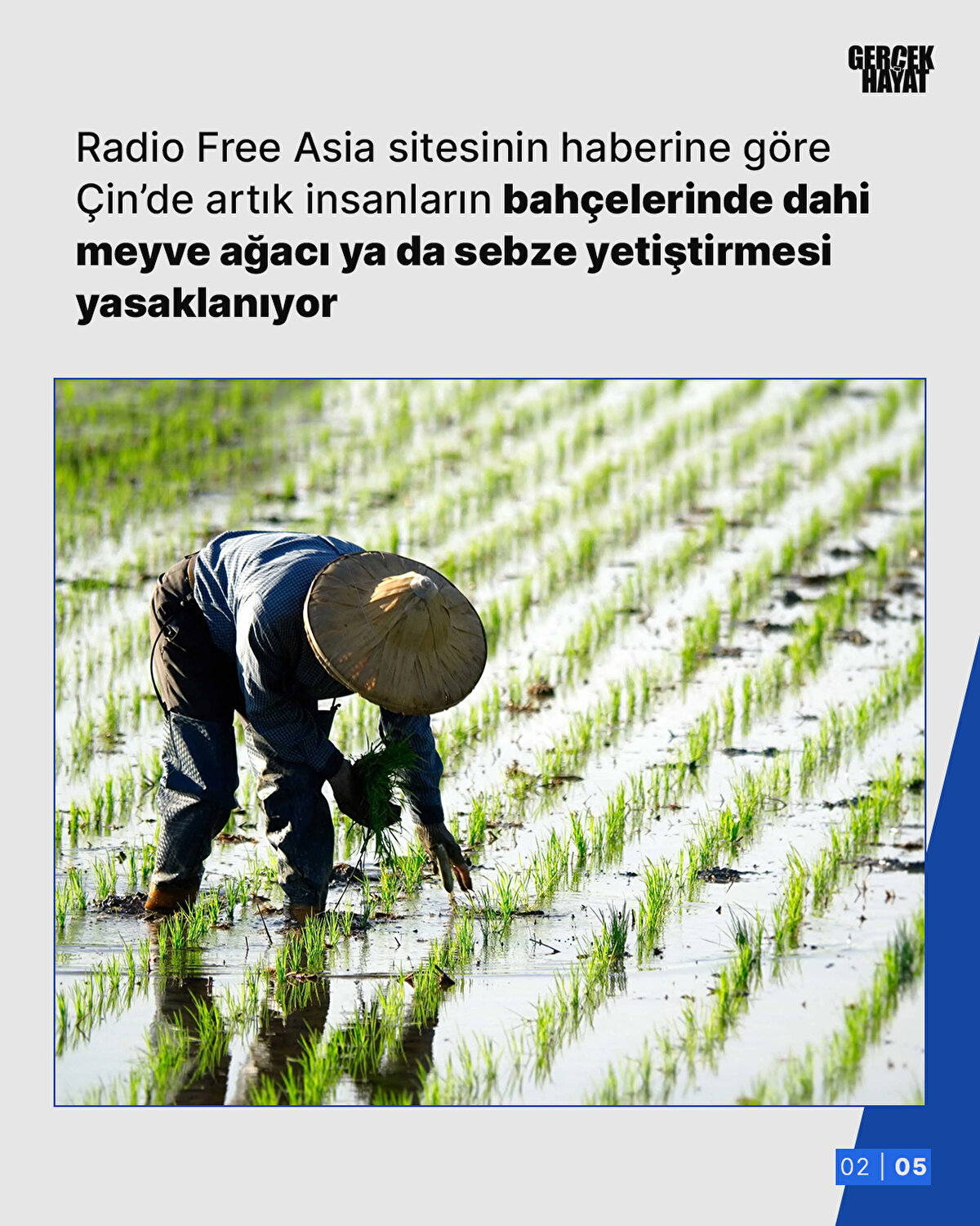 Radio Free Asia sitesinin haberine göre Çin'de artık insanların bahçelerinde dahi meyve ağacı ya da sebze yetiştirmesi yasaklanıyor.