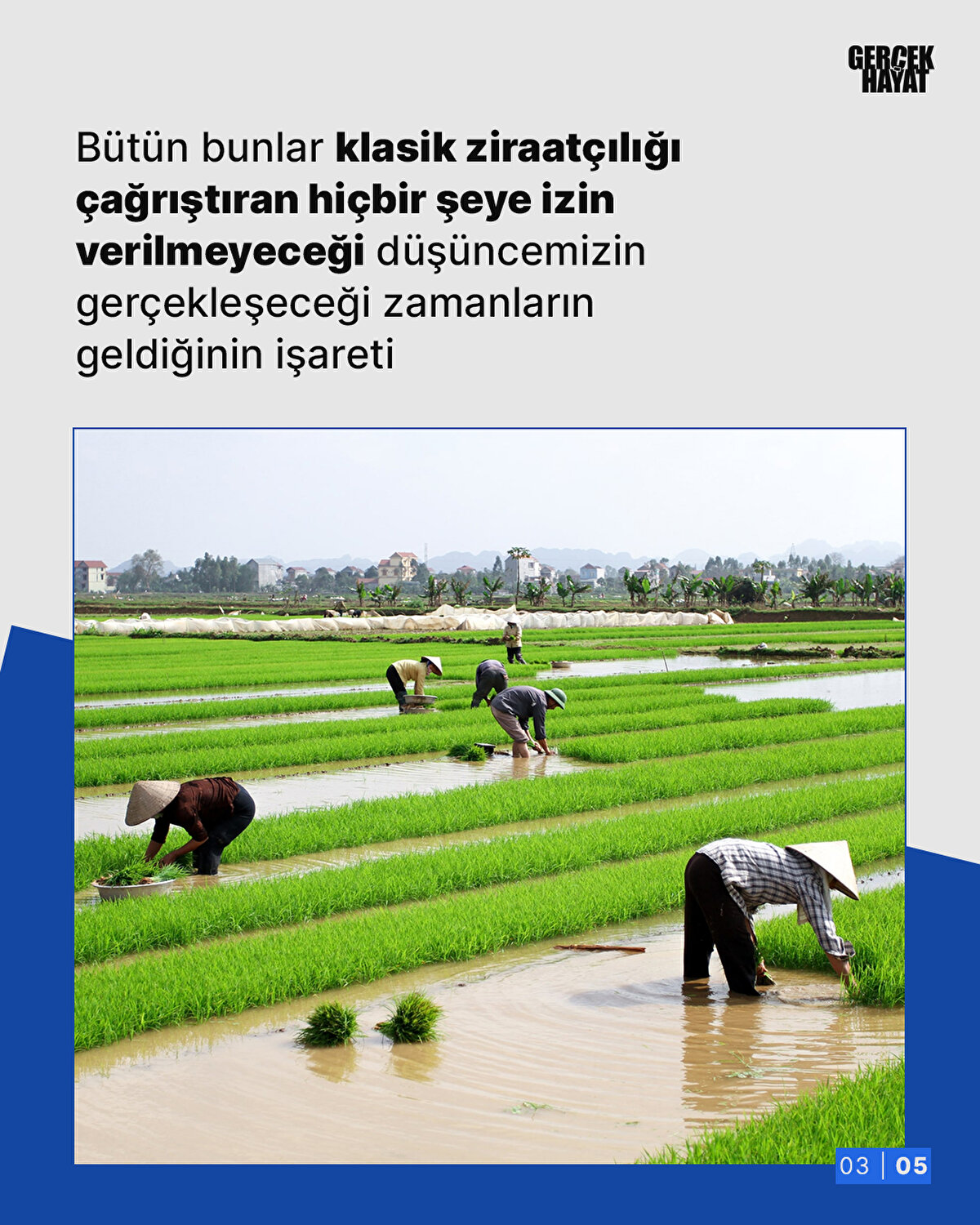 Bütün bunlar klasik ziraatçılığı çağrıştıran hiçbir şeye izin verilmeyeceği düşüncemizin gerçekleşeceği zamanların geldiğinin işareti.