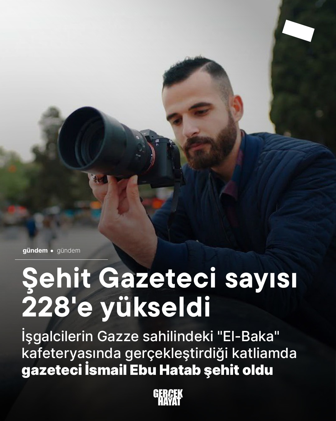 Gazeteci İsmail Ebu Hatab'ın şehit edilmesiyle birlikte, Gazze'de başlayan soykırımın başından bu yana şehit edilen gazeteci sayısı 228'e yükseldi.