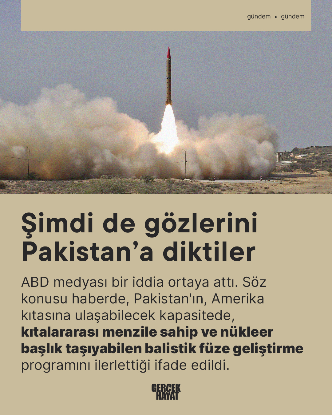 ABD medyası bir iddia ortaya attı. Söz konusu haberde, Pakistan'ın, Amerika kıtasına ulaşabilecek kapasitede, kıtalararası menzile sahip ve nükleer başlık taşıyabilen balistik füze geliştirme programını ilerlettiği ifade edildi.