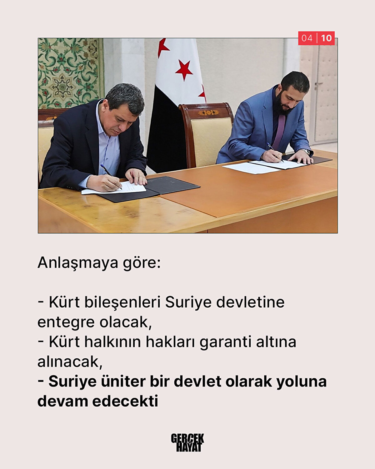 - Kürt bileşenleri Suriye devletine entegre olacak,