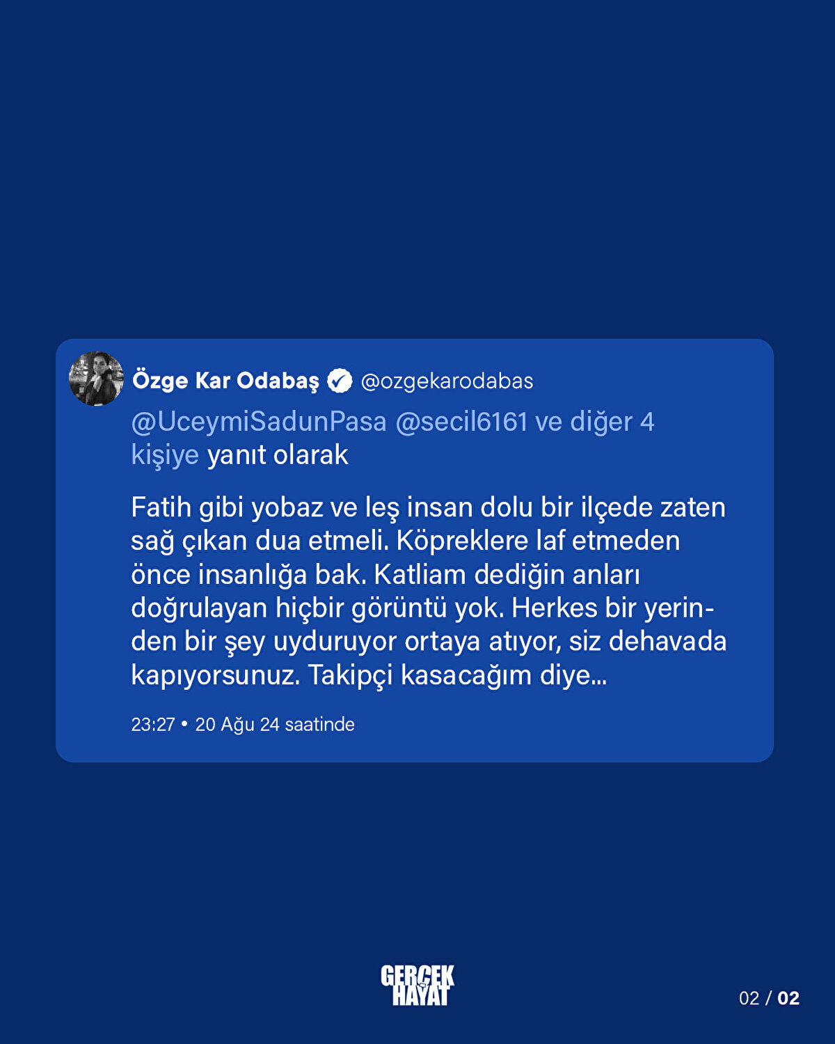 "Fatih gibi yobaz ve leş insan dolu bir ilçede zaten sağ çıkan dua etmeli"