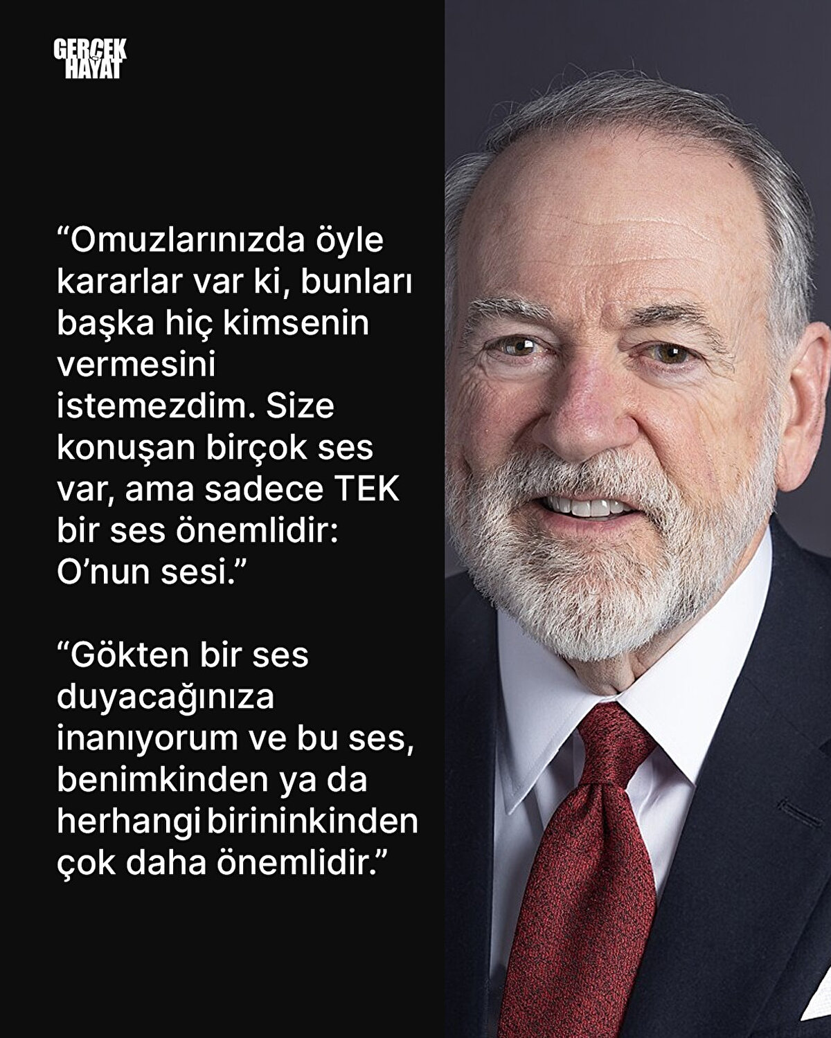 “Omuzlarınızda öyle kararlar var ki, bunları başka hiç kimsenin vermesini istemezdim. Size konuşan birçok ses var, ama sadece TEK bir ses önemlidir: O'nun sesi."