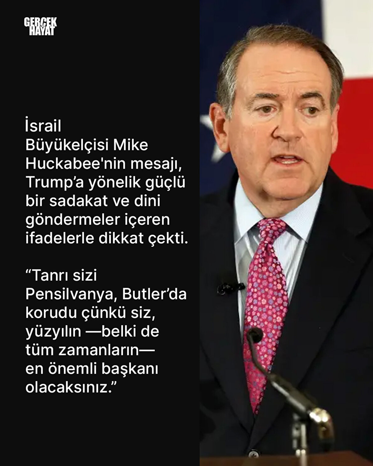 Trump'ın İsrail'e atadığı Büyükelçisi Mike Huckabee'nin mesajı, Trump'a yönelik güçlü bir sadakat ve dini göndermeler içeren ifadelerle dikkat çekti.