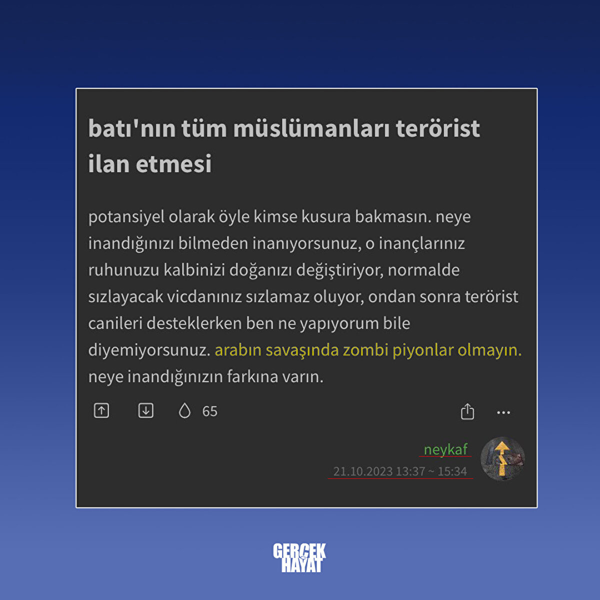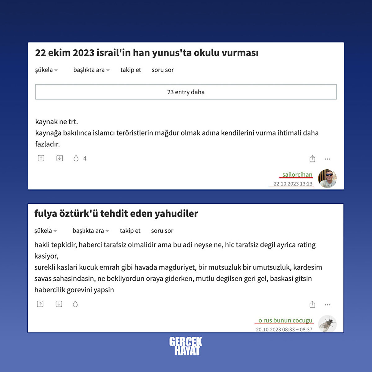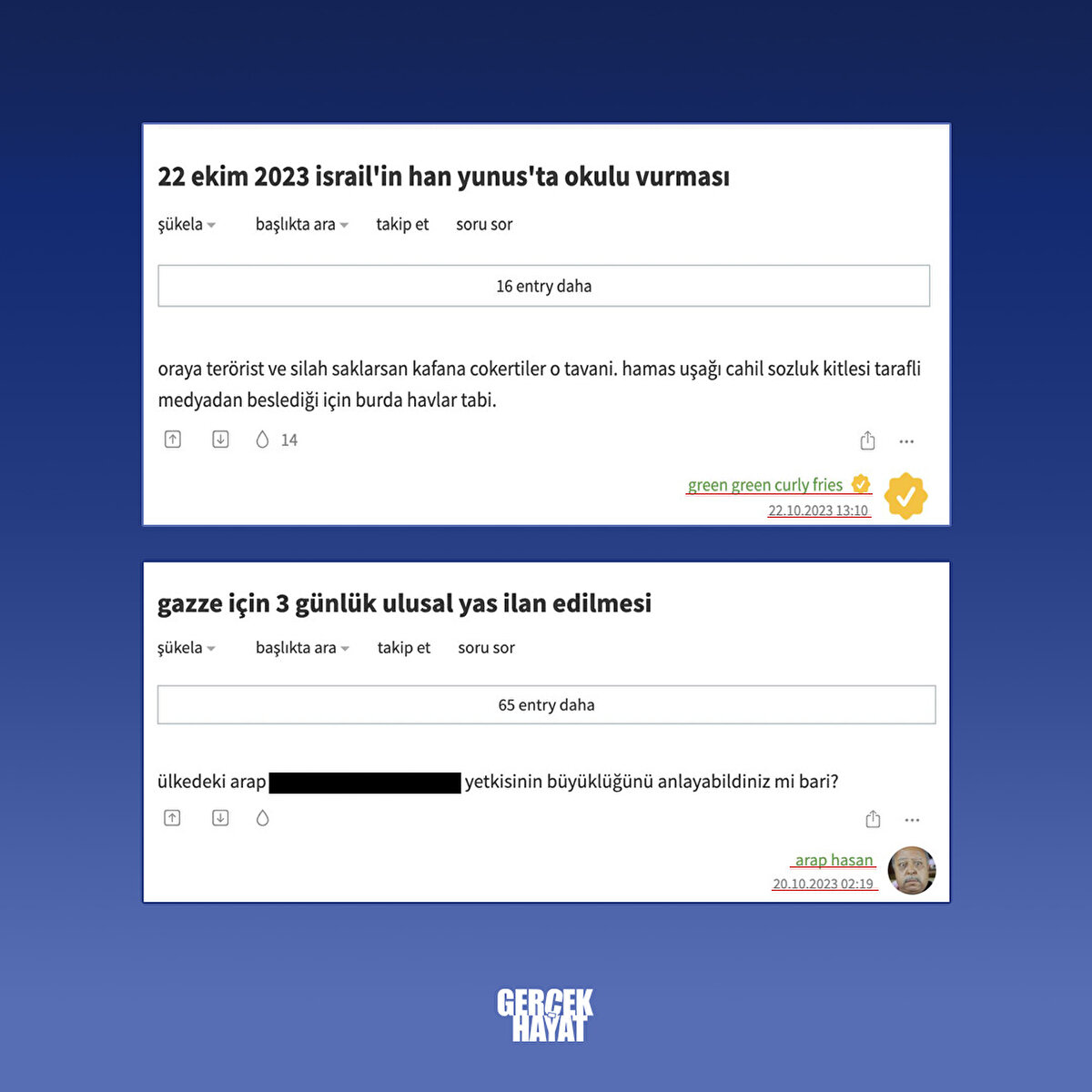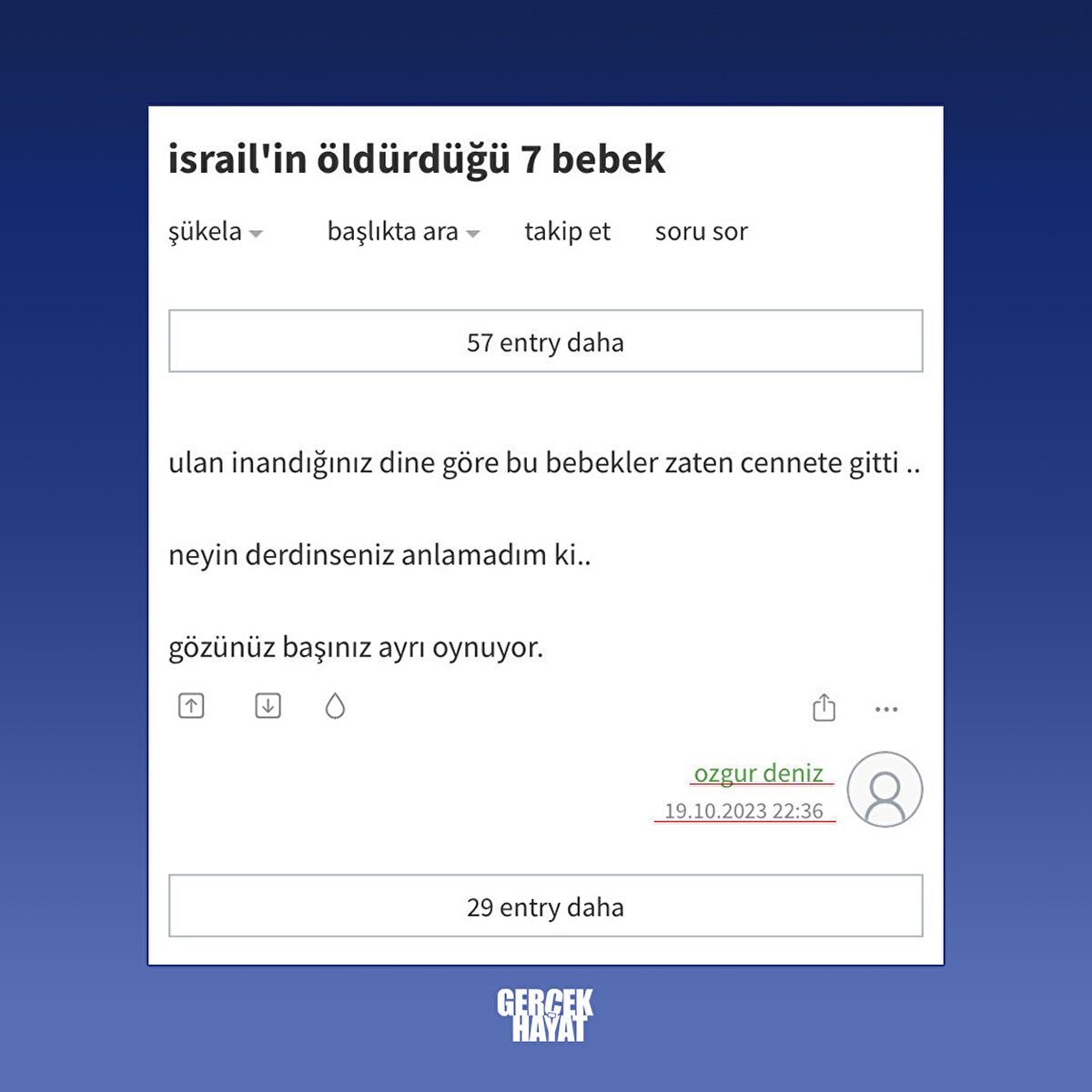 BTK tarafından erişim engeli getirilen Ekşi Sözlük yeni domain adı alarak faaliyetlerine devam ediyor. En kritik dönemlerde dezenformasyonlara imza atan Ekşi Sözlük yazarları şimdi de Gazze'deki katliamları normalleştirmeye çalışarak Müslümanları hedef aldı