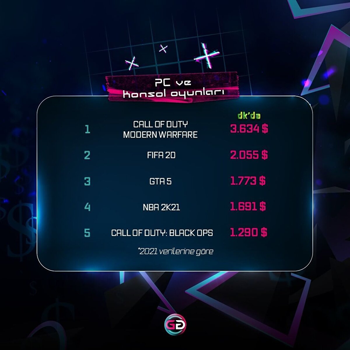 Bir yılda en çok kazanan oyunlar. Sizce yeni yılda hangi oyunlar bu listeye girer?🤑