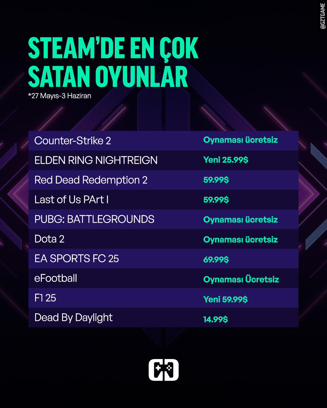 27 Mayıs- 3 Haziran arasında steam platformunda en çok satan 10 oyunun listesini hazırladık. Peki siz hangi oyunları oynadınız?