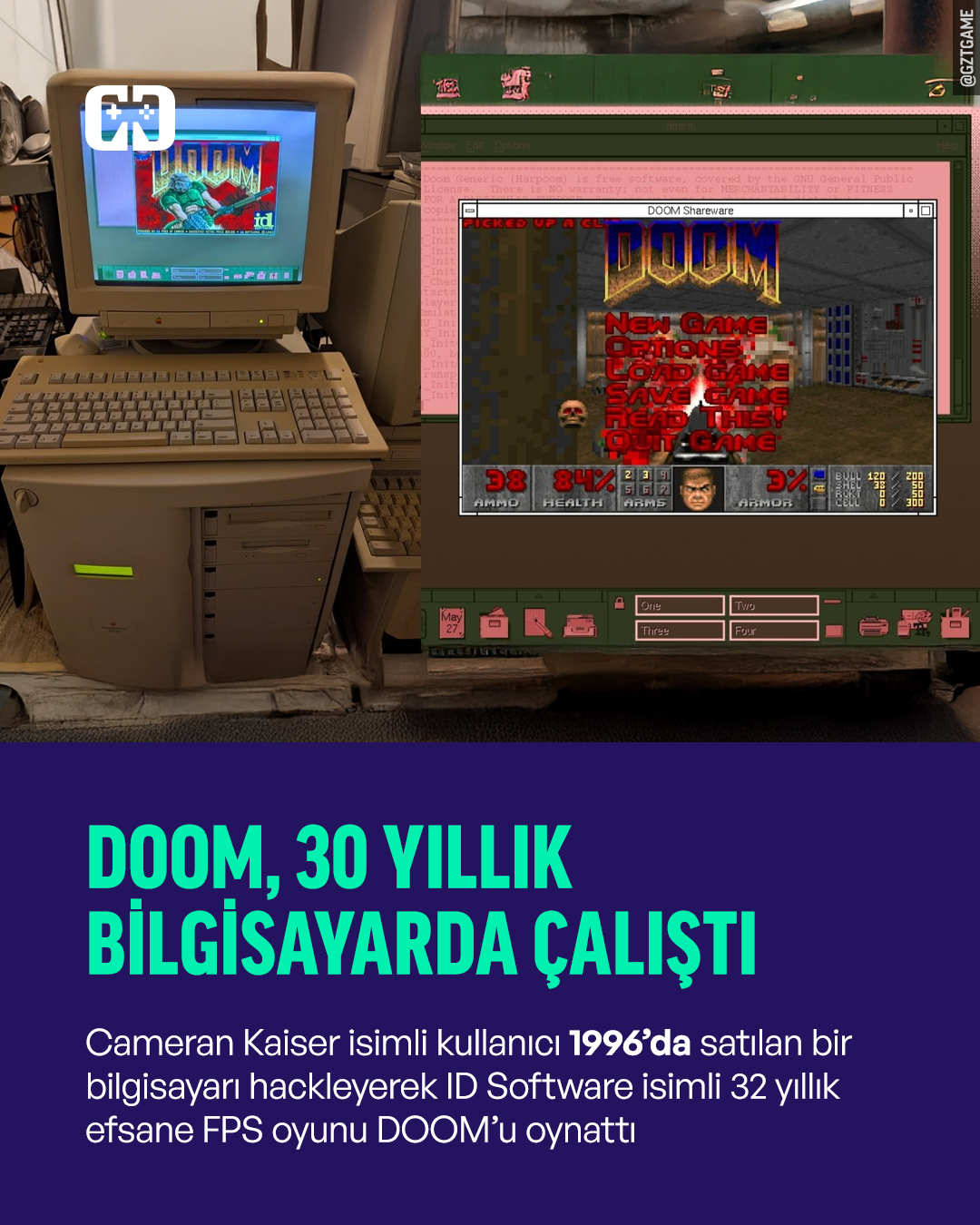 Cameran Kaiser isimli kullanıcı 1996'da satılan bir bilgisayarı hackleyerek ID Software isimli 32 yıllık efsane FPS oyunu DOOM'u oynattı