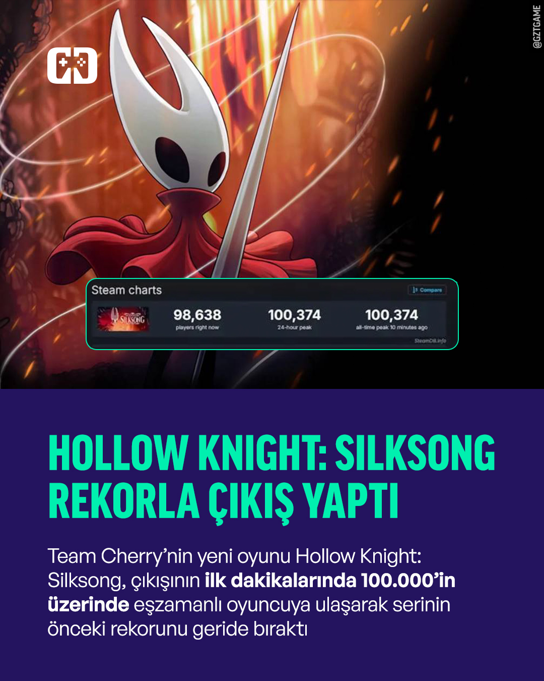 Team Cherry'nin uzun süredir merakla beklenen yapımı Hollow Knight: Silksong, çıkışının ilk anlarından itibaren oyun dünyasında büyük bir ilgiyle karşılandı. 2017'de yayınlanan ilk Hollow Knight, bağımsız yapımlar arasında adını efsaneler arasına yazdırmış ve 72.916 eşzamanlı oyuncu ile kendi döneminde önemli bir başarıya imza atmıştı. Ancak Silksong, çıkışının üzerinden daha yarım saat geçmeden bu rekoru geride bırakarak 100.000'in üzerinde eşzamanlı oyuncu sayısına ulaştı. Steam, Xbox ve Nintendo eShop üzerinde yaşanan yoğunluk, oyunun çıkış anını adeta bir oyun festivali havasına dönüştürdü.