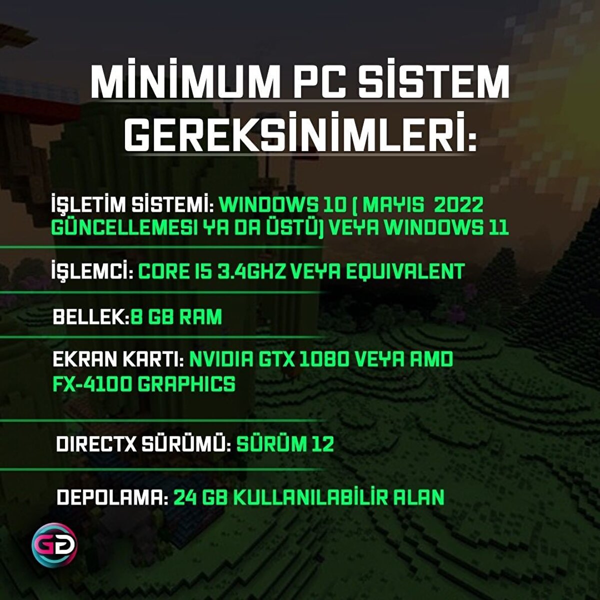 Sistem gereksinimleri aralığı gayet ideal görünüyor hatta oyunun Minecraft olduğunu düşününce daha makul bir gereksinim beklenebilirdi 🧐