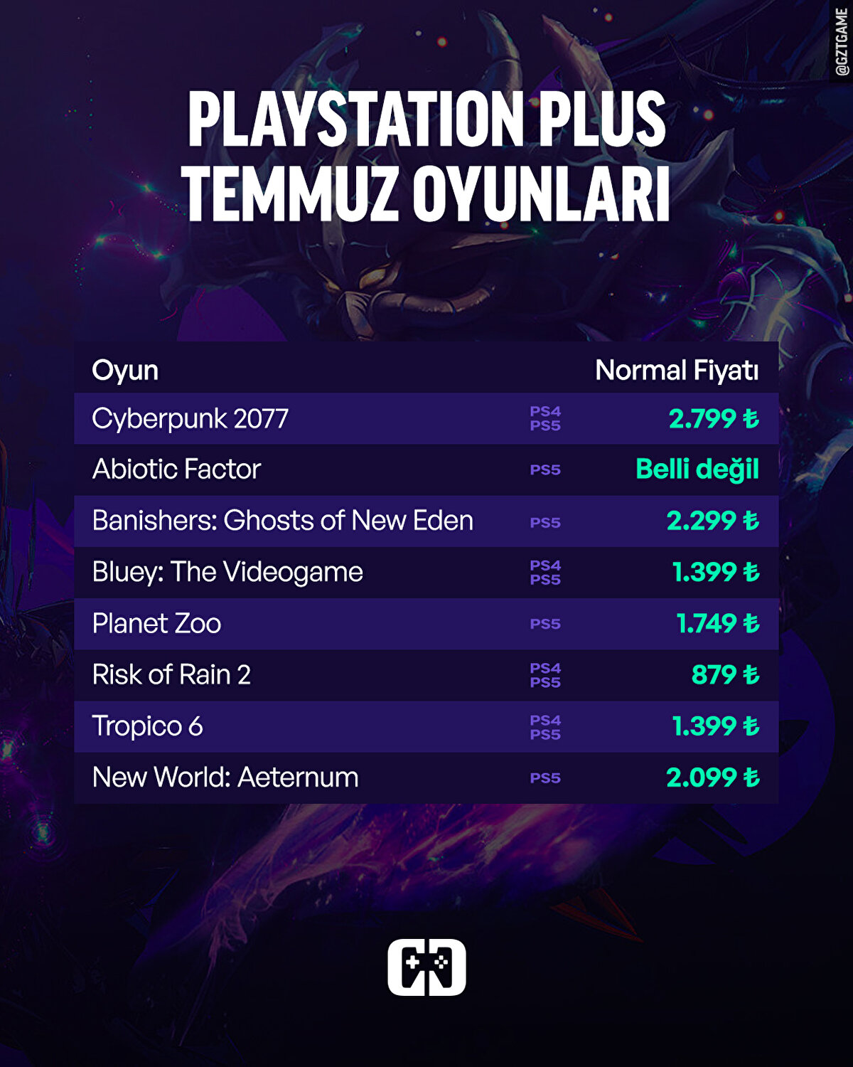 Sony, her ay olduğu gibi Temmuz 2025'te de PlayStation Plus abonelerini sevindirecek güçlü yapımları ücretsiz sunmaya hazırlanıyor. PlayStation Plus'ın Essential, Extra ve Deluxe üyelik seviyeleri için sunulan yeni oyunlar belli oldu. Temmuz ayında PlayStation Plus kütüphanesine eklenecek en dikkat çekici oyun, kuşkusuz Cyberpunk 2077. CD Projekt RED'in ses getiren açık dünya rol yapma oyunu, artık PS Plus aboneleri için erişilebilir olacak. Aynı şekilde Banishers: Ghosts of New Eden da hikâye odaklı yapısıyla kütüphaneye dahil ediliyor. Bu iki büyük oyunun toplam değeri ise 12.623 TL. Öte yandan, Temmuz ayının ücretsiz oyunları listesine baktığımızda Diablo IV ön plana çıkıyor. Blizzard'ın efsane serisinin en yeni oyunu olan Diablo IV'e ek olarak, platform türündeki Jusant ve dövüş oyunları tutkunları için The King of Fighters XV de ücretsiz olarak sunuluyor. Bu üç oyunun toplam değeri ise 3.723 TL. İşte Temmuz 2025 itibarıyla PlayStation Plus abonelerine sunulan dikkat çeken oyunlar: Cyberpunk 2077
