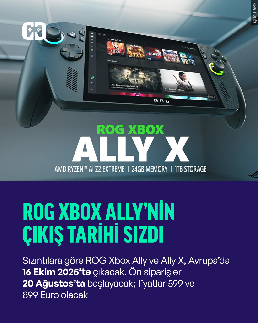 Güvenilir sızıntı kaynağı billbil-kun'a göre, ROG Xbox Ally ve Xbox Ally X, Avrupa'da 16 Ekim 2025'te piyasaya sürülecek. Steam Deck benzeri bu el konsolu, Xbox oyunlarını hareket halindeyken oynamayı mümkün kılacak. Ön siparişler 20 Ağustos'ta başlayacak; Xbox Ally 599 Euro, premium Xbox Ally X ise 899 Euro fiyat etiketine sahip olacak. Microsoft'un Gamescom 2025'te cihazı ayrıntılı şekilde tanıtması ve fuar standında Hollow Knight: Silksong ile birlikte deneme imkânı sunması bekleniyor. Silksong'un çıkış tarihi hâlâ netleşmese de, oyunun Ally ile birlikte Game Pass'te yer alacağı doğrulanmış durumda. Bu gelişme, Silksong'un cihazın çıkış oyunlarından biri olabileceği yönündeki beklentileri güçlendiriyor.