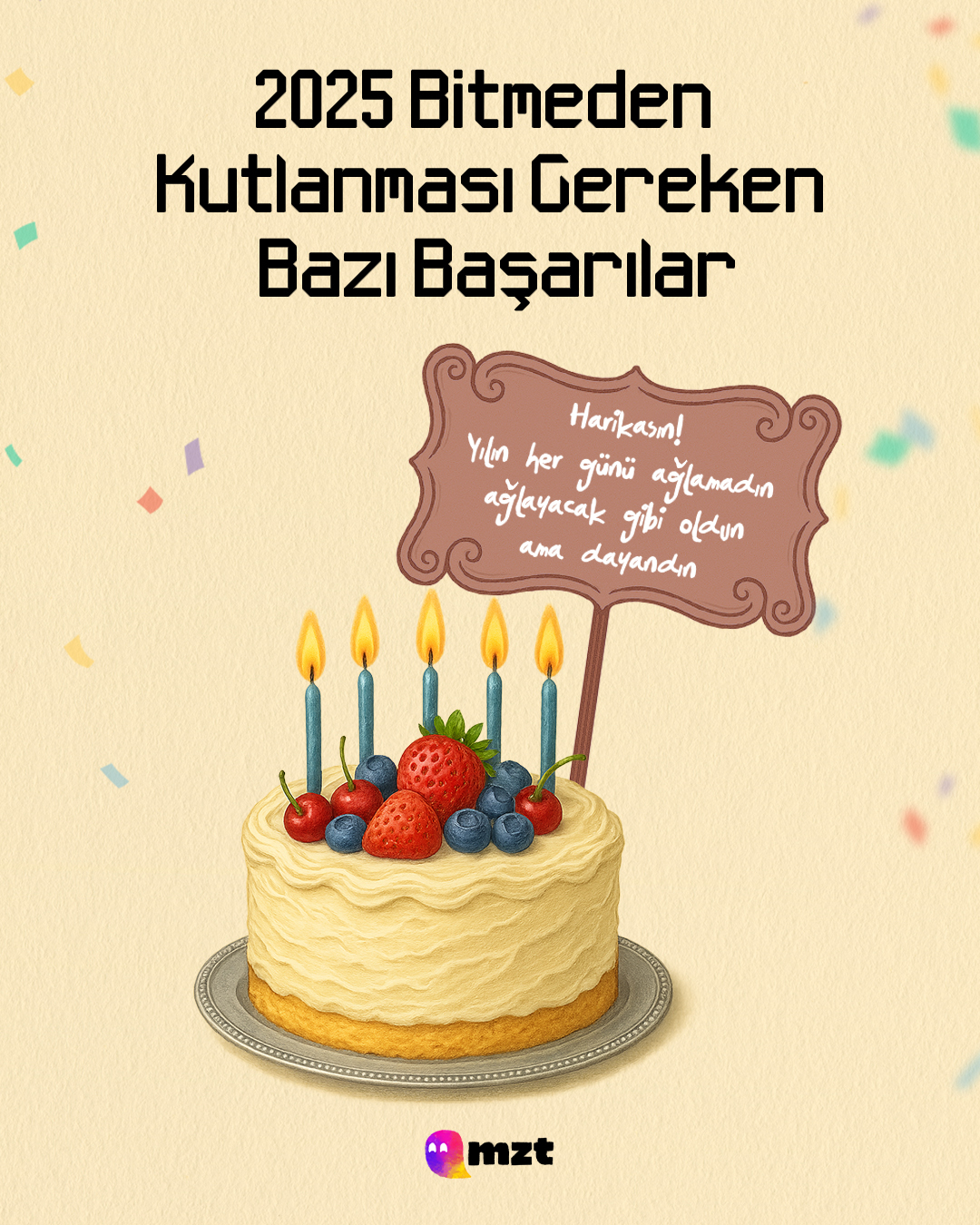 Bu paylaşımlar, “başarı” kavramının yeniden tanımlandığını da gösteriyor. Kilo verememiş olsan bile hayatta kalmak, bekar gezmiş olsan da kendi yolunda yürümek ya da yıl boyunca tamamen dağılmamak… Hepsi, kendine biraz daha anlayışlı bakabilmenin yolları. Belki de asıl başarı, 2025 bitmeden aynaya bakıp “zor oldu ama buradayım” diyebilmekte yatıyor. Siz bu küçük ama gerçek başarılardan kaç tanesini işaretleyebiliyorsunuz?