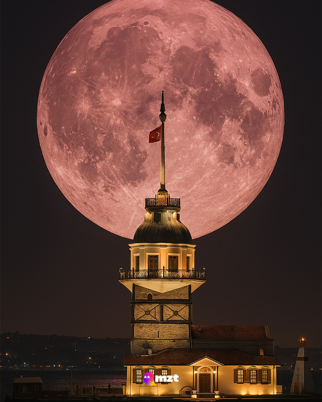 Ayın pembe renkte gözüktüğü Çilek Dolunayı