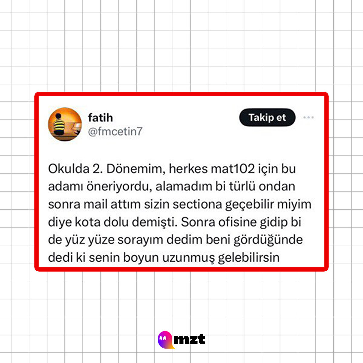 İhsan Doğramacı Bilkent Üniversitesi'nde Calculus Alanında öğretim görevlisi olan Okan Tekman ile geçen, hatırladıkları efsane anları anlatan Twitter kullanıcılarının paylaştığı tweet'leri sizler için derledik. Peki sizin favoriniz hangisi oldu?