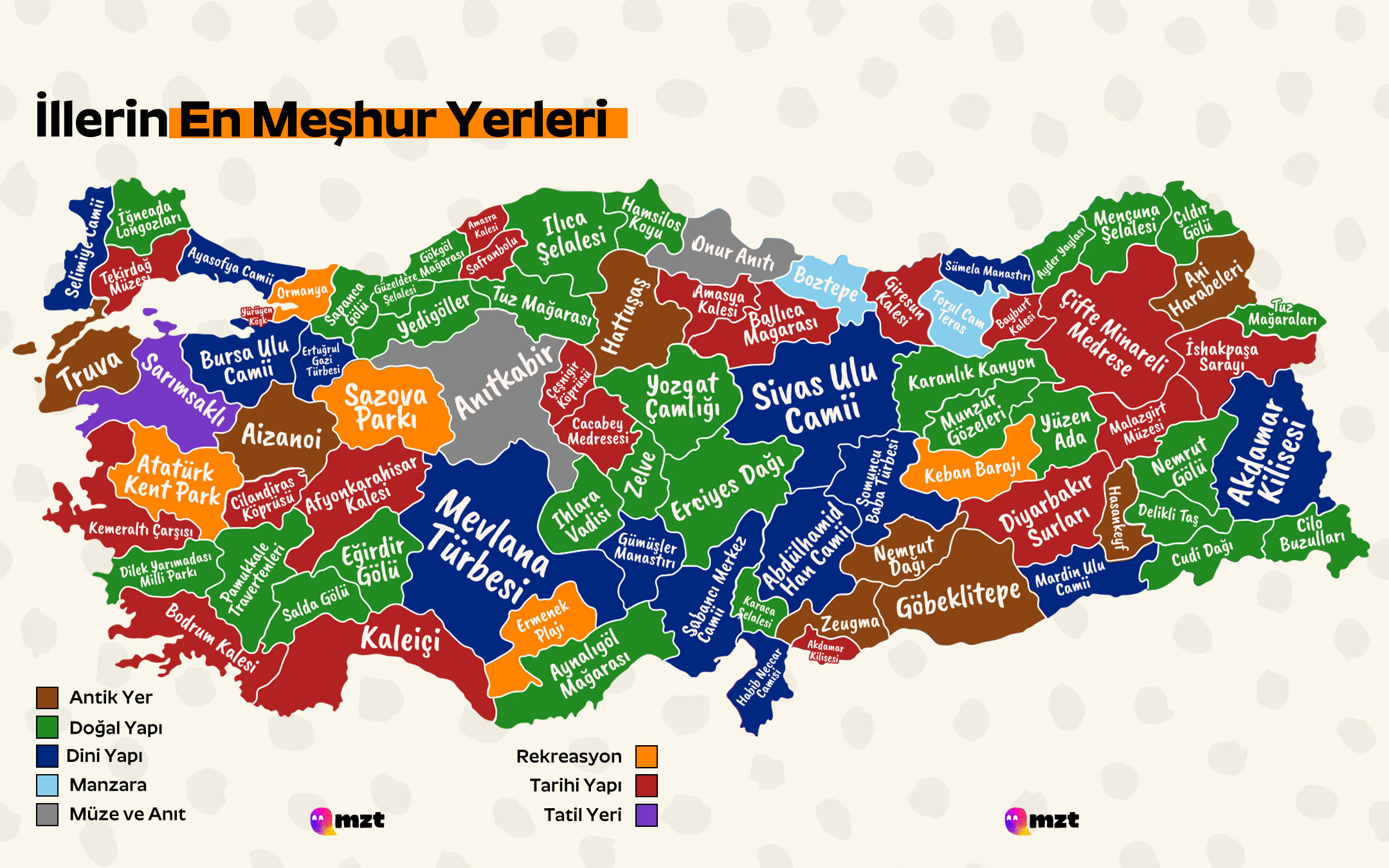 Şehrinize Dair Bir Soru Her şehrin meşhur bir simgesi varken, aslında bu yerler sadece birer turizm noktası değil; aynı zamanda kültürel kimliğin de temsilcisi oluyor. Bu harita bizlere ülkemizin ne kadar zengin bir turizm potansiyeline sahip olduğunu hatırlatırken, aynı zamanda kişisel bir merak da uyandırıyor. Çünkü herkesin doğduğu ya da yaşadığı şehri özel kılan bir yer vardır. Belki bir göl, belki bir cami, belki de asırlardır ayakta duran bir kale… 👉 Peki sizin şehrinizin en meşhur yeri neresi?