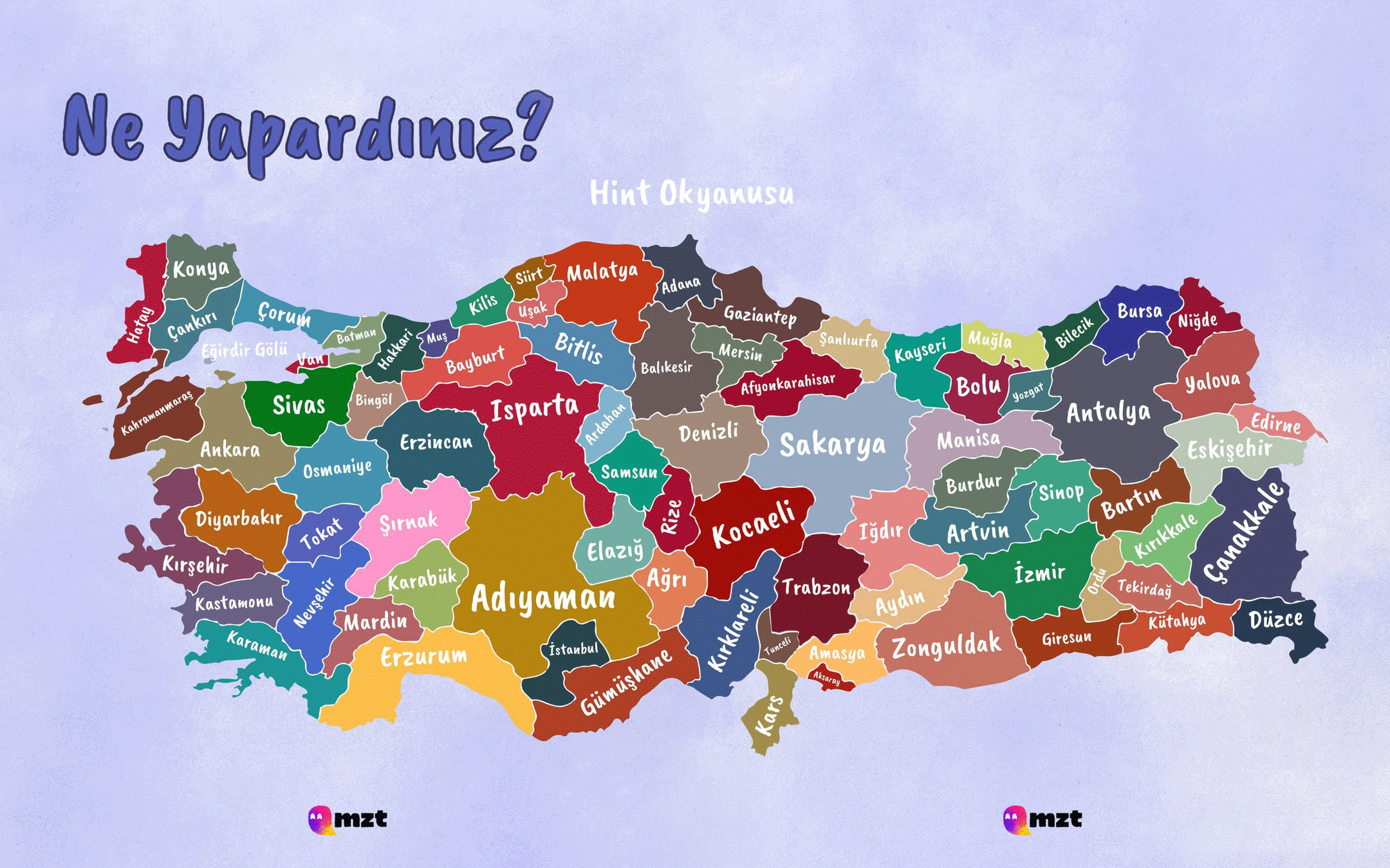 Düşünsenize, bir sabah uyandığınızda yaşadığınız şehrin yer değiştirdiğini görüyorsunuz. Haritaya baktığınızda İstanbul'un yerinde Adıyaman, Trabzon'un yerinde Kocaeli, Antalya'nın üstünde Bursa yazıyor… Üstelik Karadeniz'in adı “Hint Okyanusu” olmuş! Hepimizin yıllardır ezbere bildiği Türkiye haritasının böyle baştan aşağı değiştiğini görmek, ilk bakışta kafa karıştırıcı ama aynı zamanda oldukça eğlenceli bir sürpriz olurdu. İnsan, yaşadığı şehri yeniden keşfetmek zorunda kalsa nasıl hissederdi?