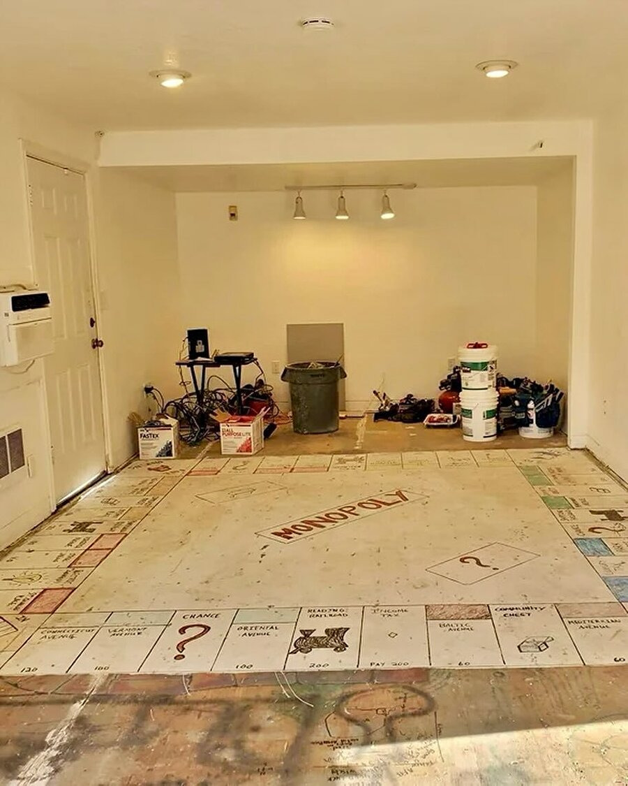 Yeni aldıkları evin halısını kaldıran ev sahipleri, beklenmedik bir sürprizle karşılaştı. Halının altında, el ile çizilmiş dev bir Monopoly tahtası gizliydi.
