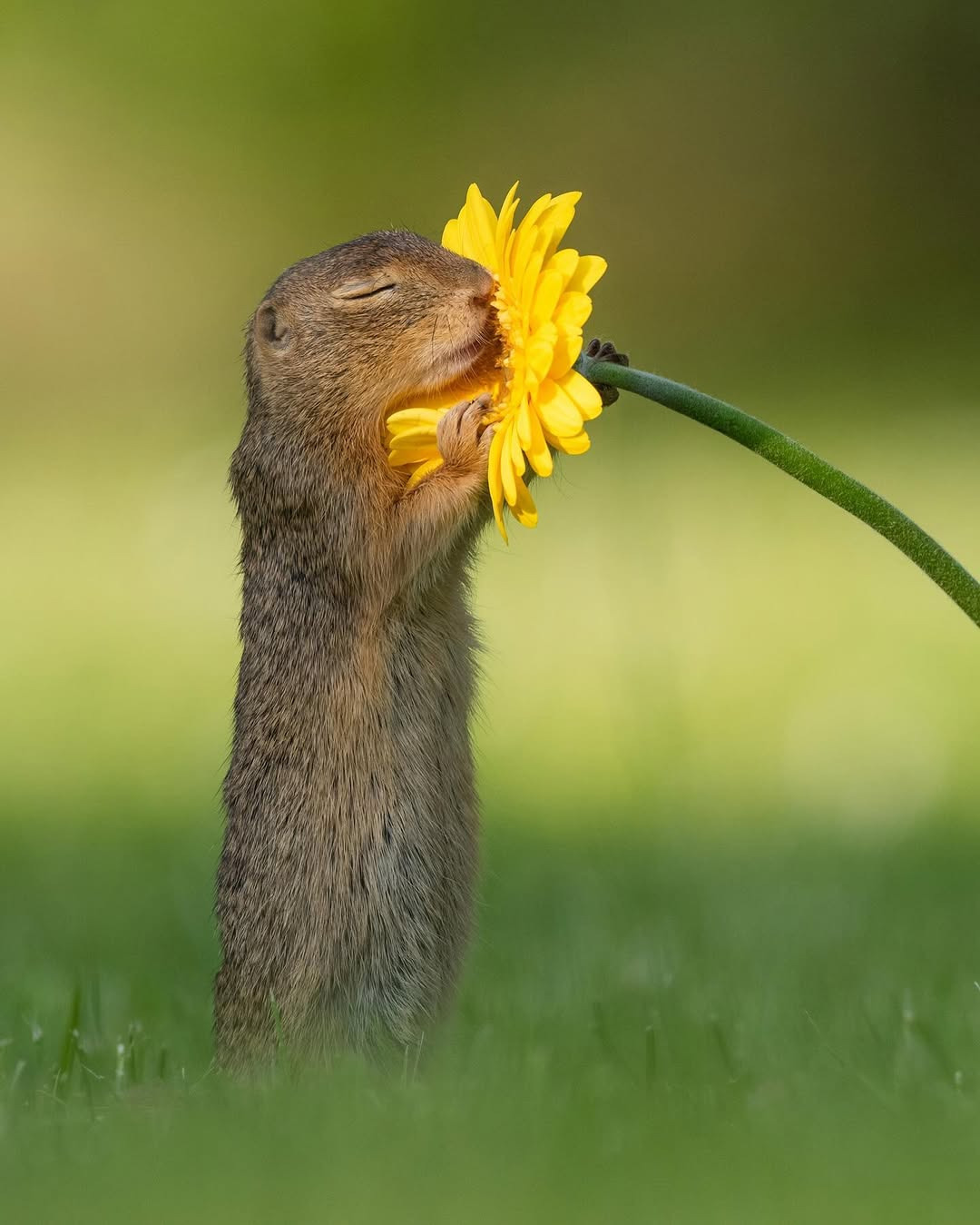 Bir fotoğrafçının, çiçek koklayan sincabı yakaladığı anlar.