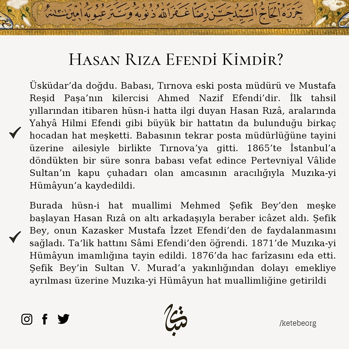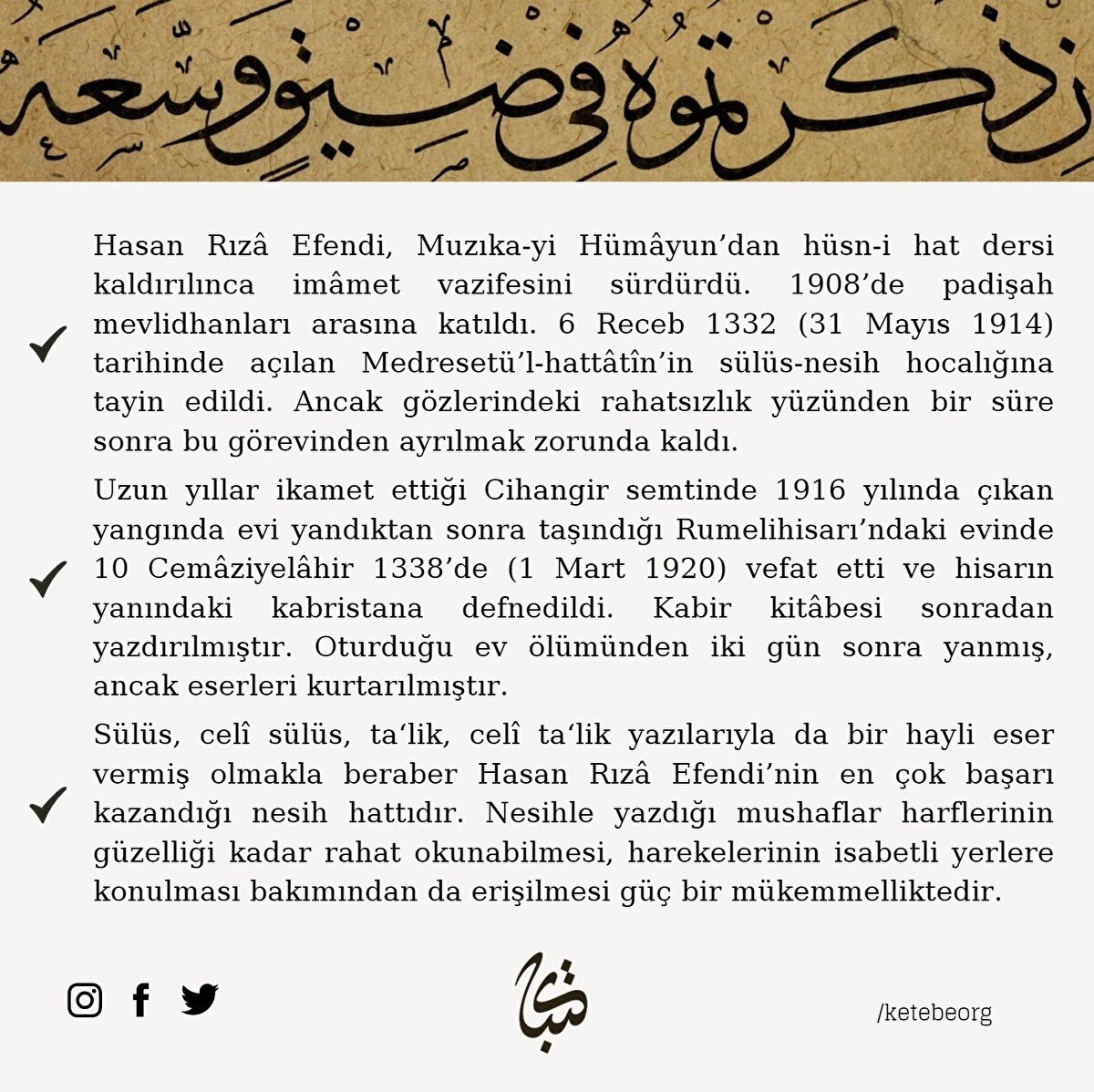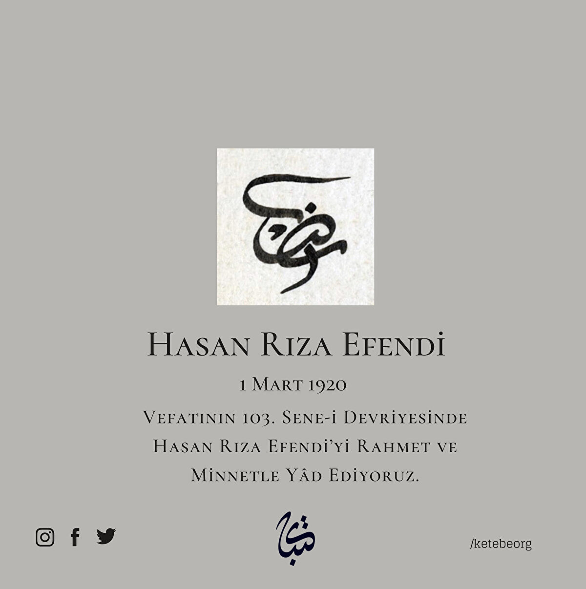 Vefatının 103. Sene-i Devriyesinde Hattat Hasan Rıza Efendi'yi Rahmet ve Minnetle Yâd Ediyoruz.