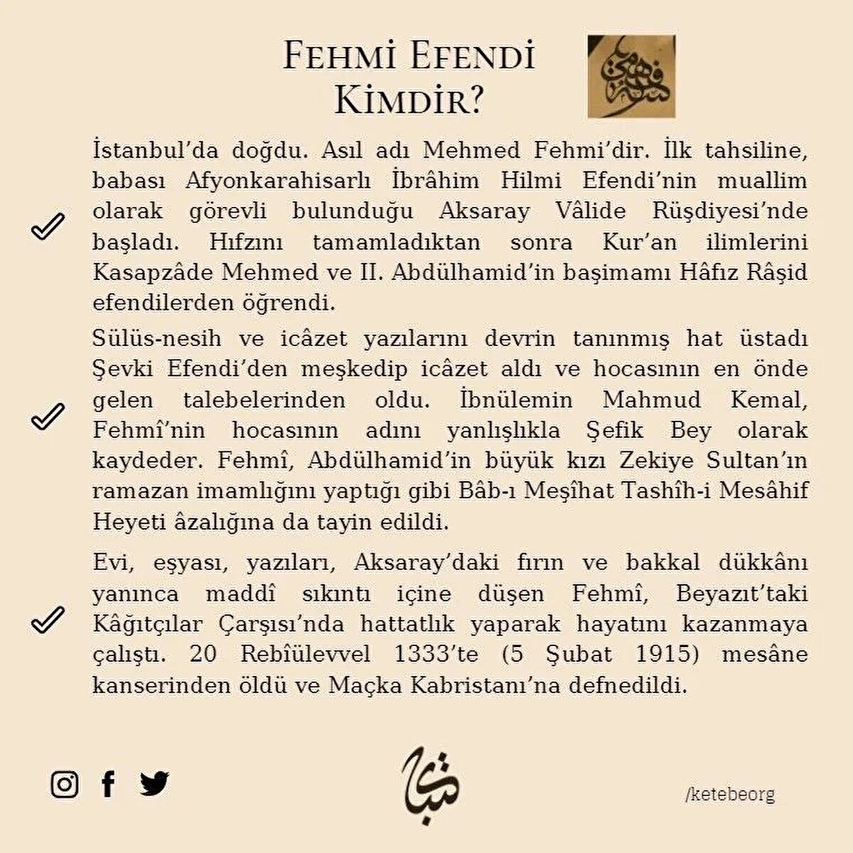 Vefatının 107. sene-i devriyesinde Mehmed Fehmî Efendi'yi rahmet ve minnetle yâd ediyoruz.
