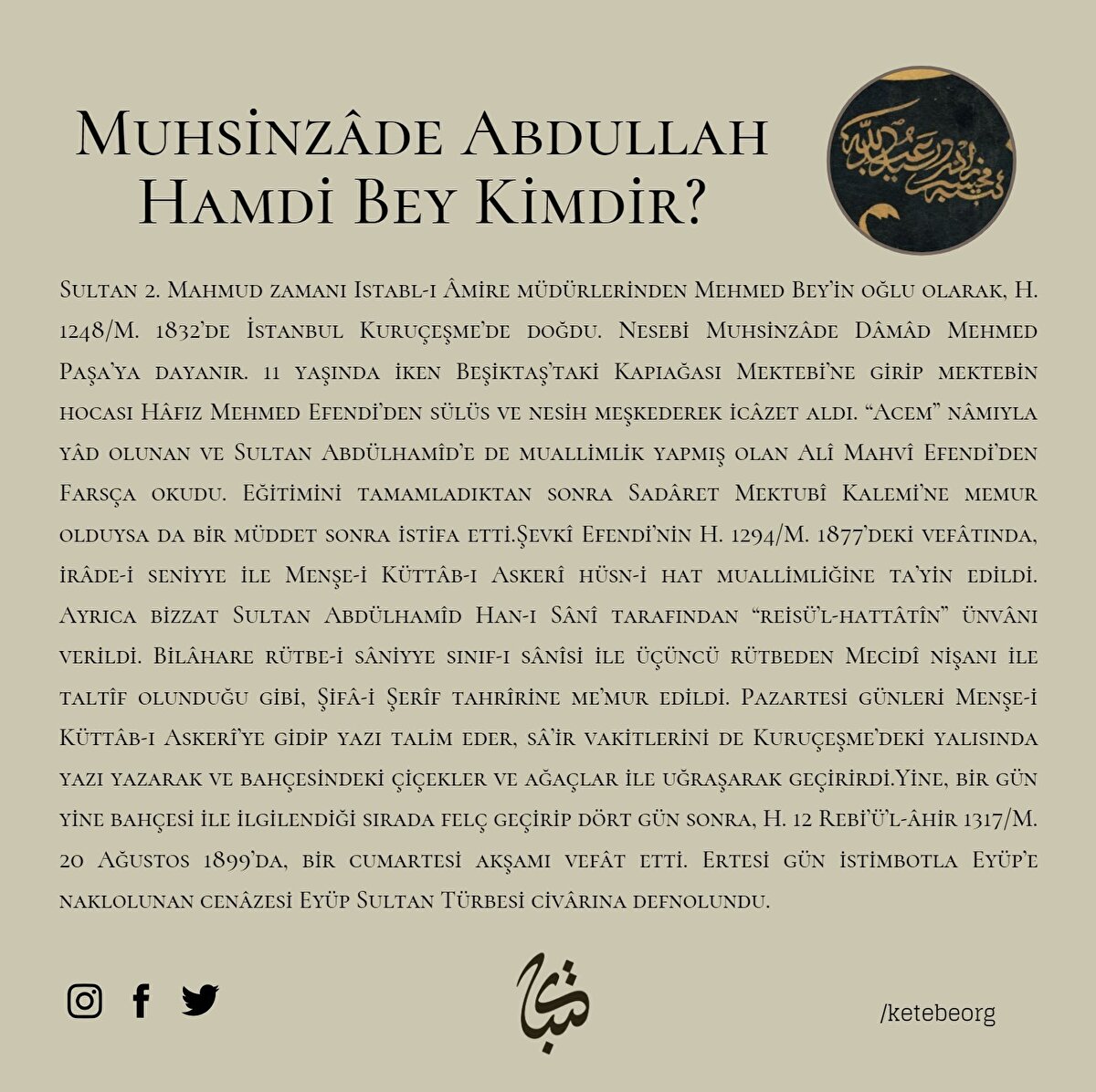 Vefatının 125. Sene-i Devriyesinde Muhsinzâde Abdullah Hamdi Bey'i Rahmet ve Minnetle Yâd Ediyoruz.