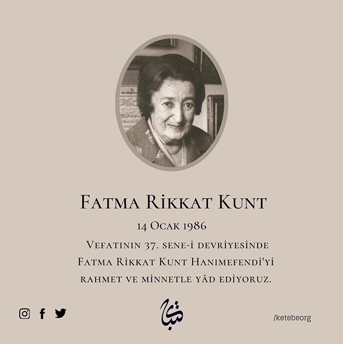 Vefatının 37. Sene-i Devriyesinde Fatma Rikkat Kunt Hanımefendi'yi Rahmet ve Minnetle Yâd Ediyoruz.