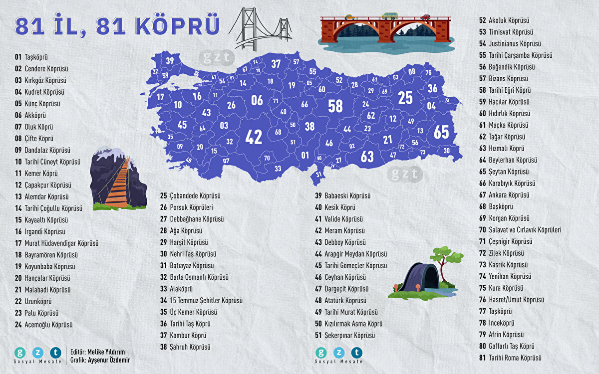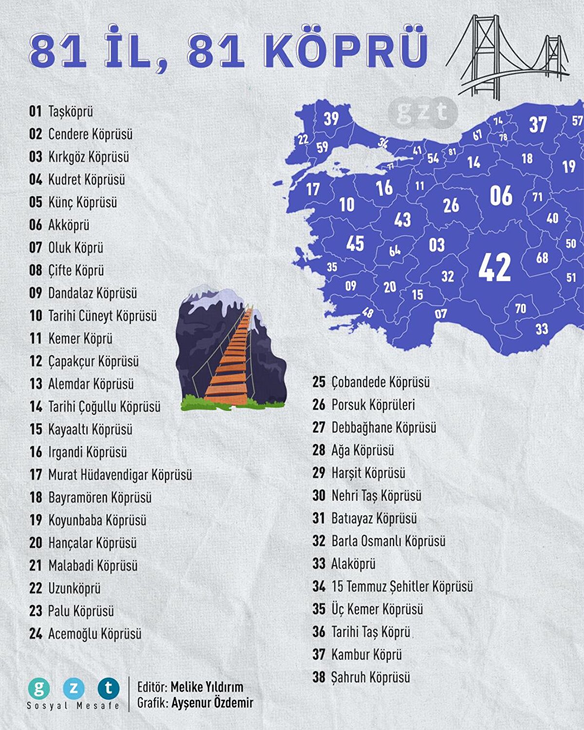 Türkiye'deki tüm şehirlerden derlediğimiz köprüleri istifadenize sunuyoruz 🌉🥰