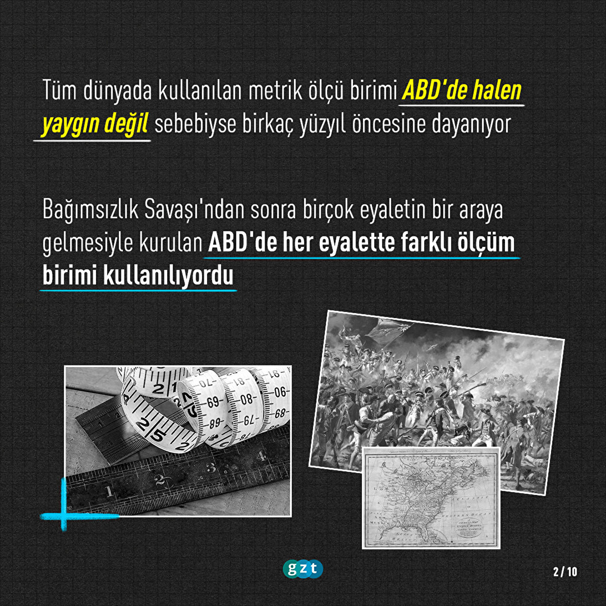 Metrik sistem veya metrik birimler, uzunluk için metre ağırlık için kilogram temel birimlerine dayalı uluslararası kabul görmüş ondalık tabanlı ölçüm sistemidir. Tüm dünyada kabul görmesine rağmen ABD kendi ölçü birimini kullanıyor. Bağımsızlık Savaşı sonrası diğer ülkeler ile eşit seviyeye ulaşmak için bu kadar çabalayan bir ülke ticarette önemli bir yere sahip olmasına rağmen neden uluslararası ölçüm sistemini kullan(a)madı? Olay mahalinde Jack Sparrow'un Siyah İnci'sini gören olmamış ama bu işin içinde Karayip Korsanları'nın parmağı var...