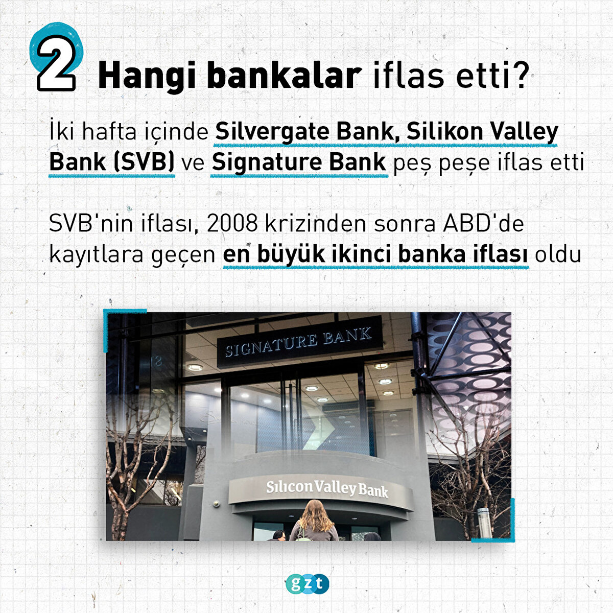 ABD'de peş peşe gelen iflasların ardından bankacılık alanında büyük kriz yaşanıyor. Geçen hafta Silvergate ve Silikon Valley Bank'ın batmasının ardından New York merkezli Signature Bank'ın da battığı duyuruldu. Banka krizi hakkında